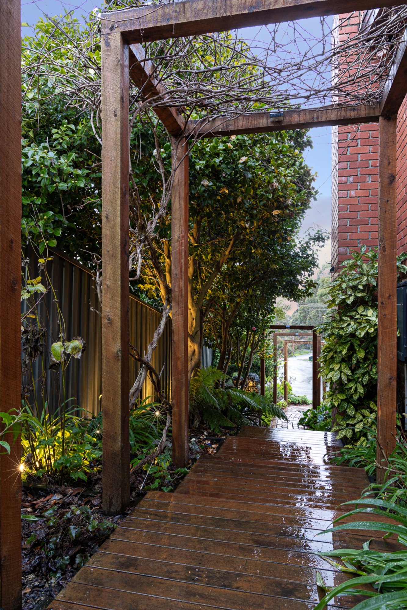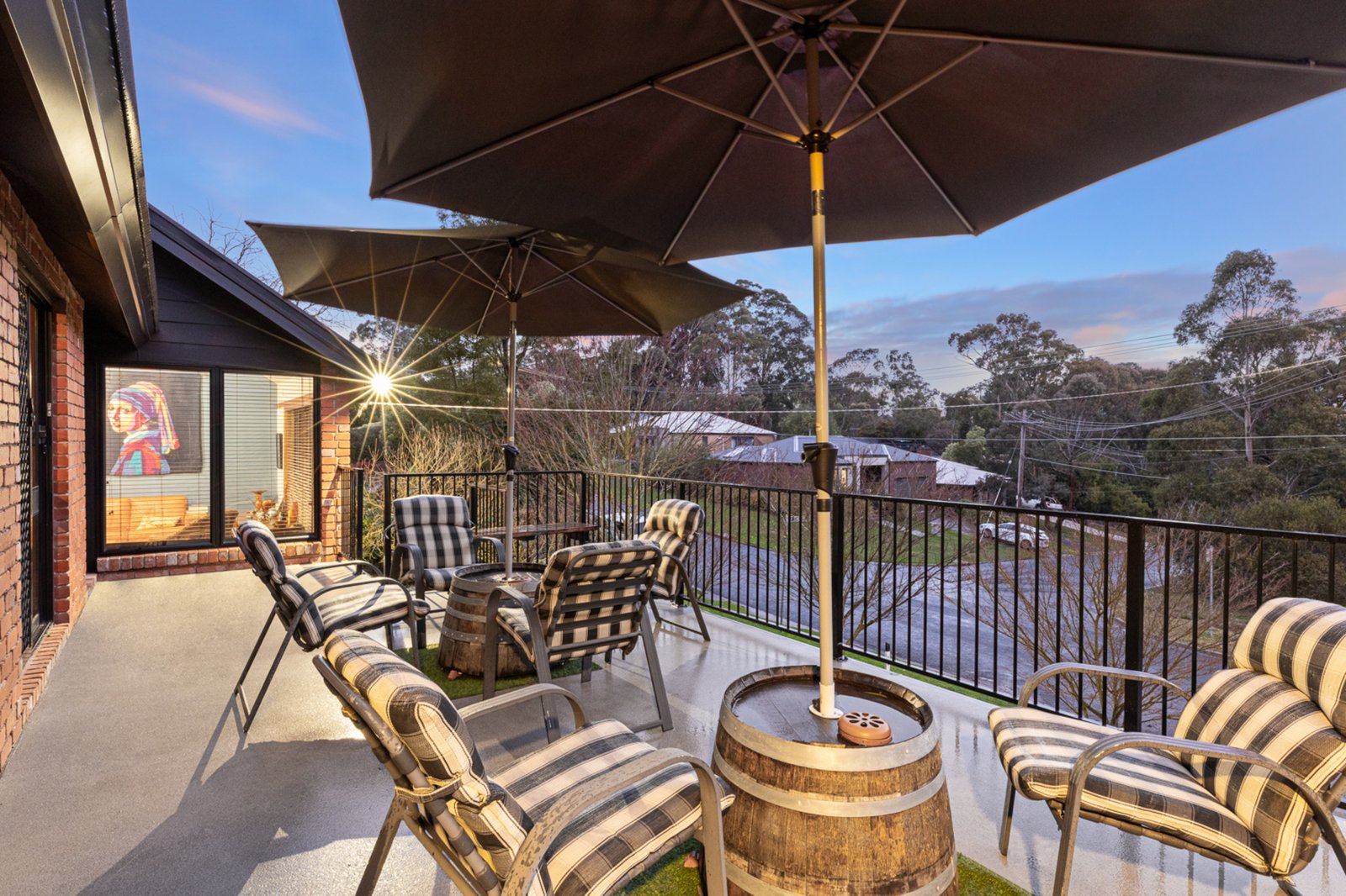 A handy configuration of the family bathroom has a shower over bath in the main room, a second shower room, and separate toilet. Other internal features include hydronic heating throughout, a split system air-conditioner in the living area, a laundry, and with plenty of cupboard space. The real surprise is a third living zone – a fully enclosed outdoor room which boasts a wood combustion heater and outlook to the picturesque gardens, the perfect room to retreat to after a long day at work. There’s also an undercover alfresco area for outdoor entertaining, and of course there’s the front deck which overlooks the tree tops and is perfect for summer gatherings - so year-round entertaining is guaranteed!