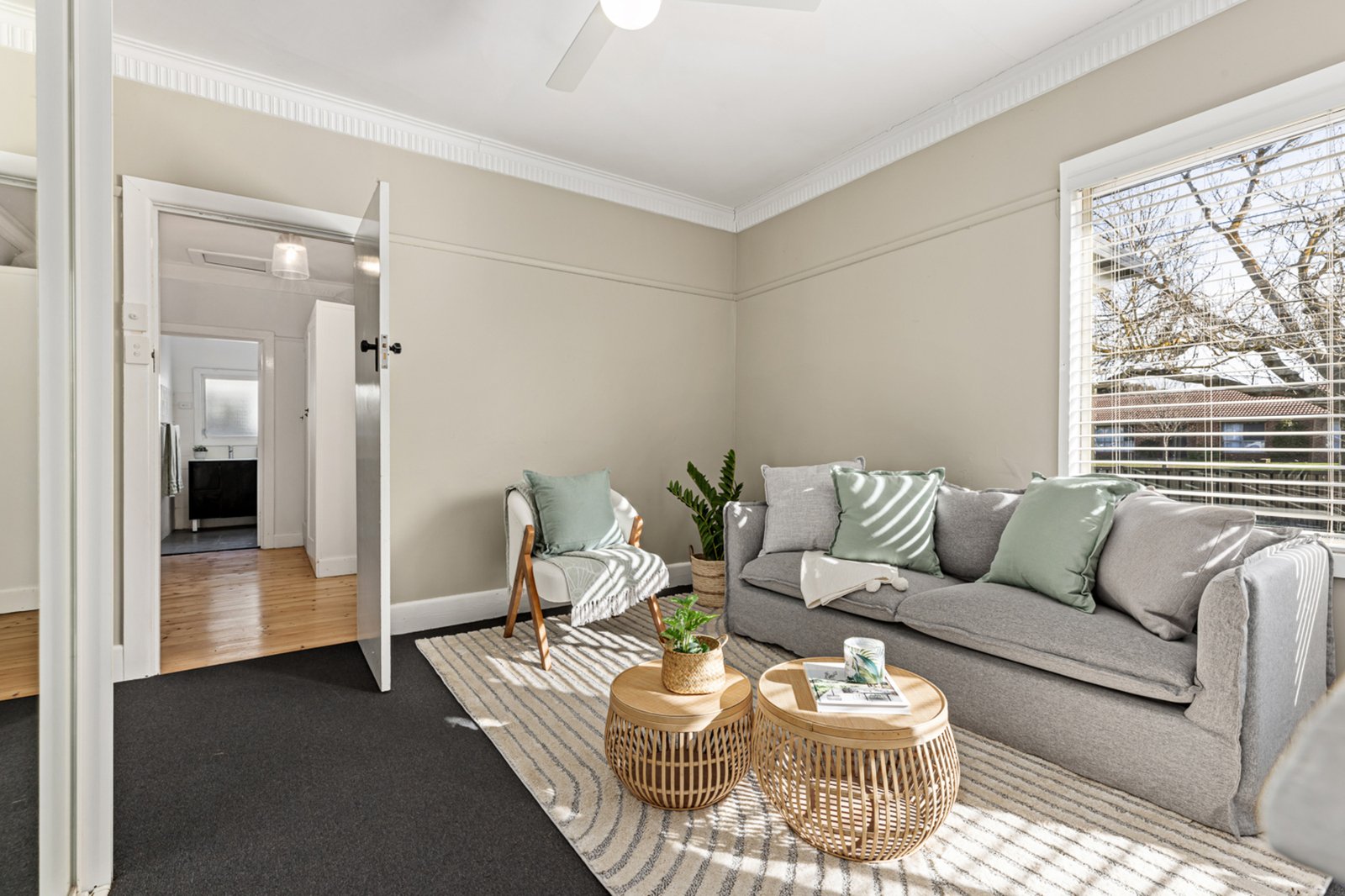 At the rear of the home, the kitchen, living, and dining area is filled with natural light and equipped with quality appliances, creating an ideal hub for daily living and entertaining. The original front living room, complete with an open fireplace, adds character and warmth, and could easily serve as a fifth bedroom or additional living space as needed.