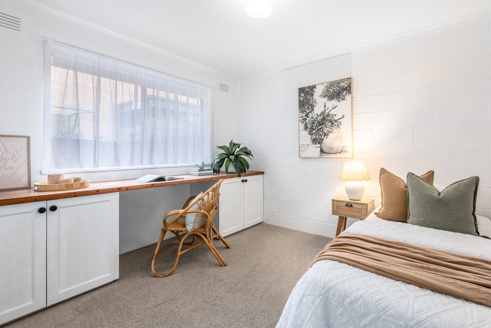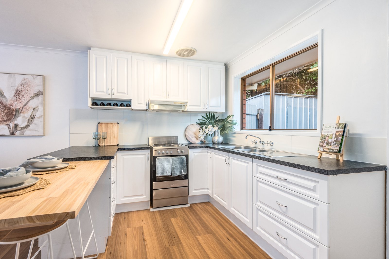 The main bedroom includes built-in robes and dresser, bedroom two features a built-in desk and storage, both serviced by a tastefully updated central bathroom. A European laundry adds to the fantastic functionality of the home.