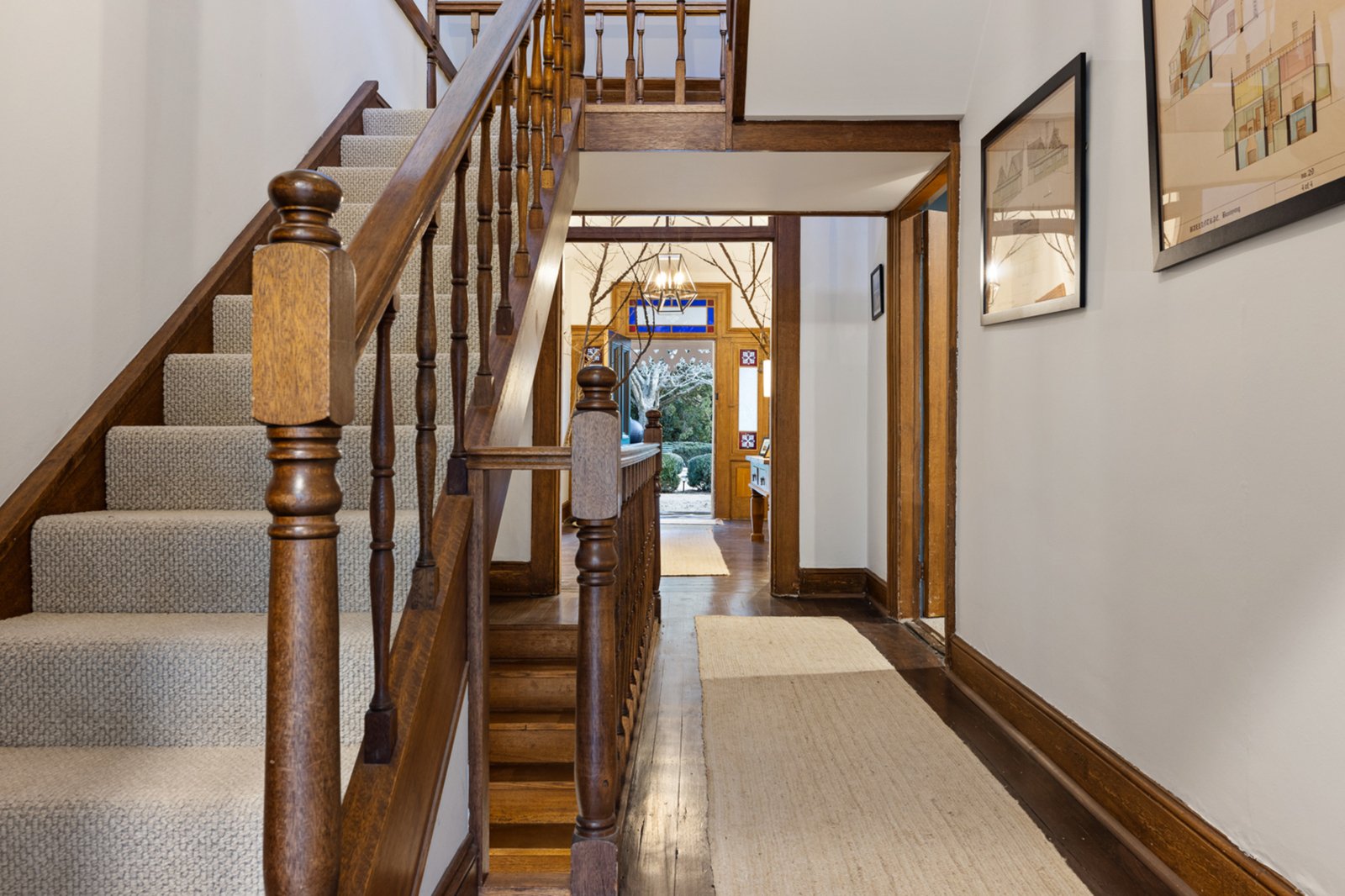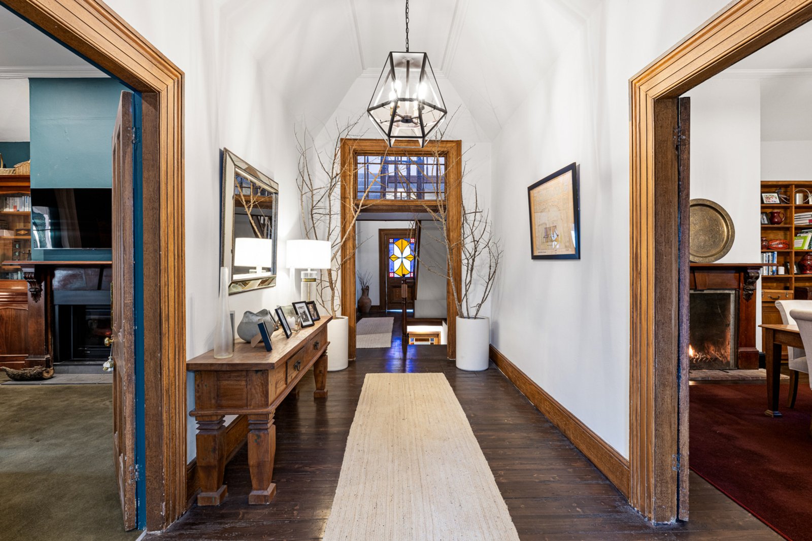 From the moment you step inside, the home’s charm and grandeur are immediately apparent. Showcasing a stunning blend of period features and modern comfort, the residence offers both formal and informal living spaces, ideal for relaxed family living or sophisticated entertaining. The kitchen is a standout, beautifully renovated with high-end finishes, quality appliances, and a warm, welcoming aesthetic. Adjacent is a feature-rich dining room complete with an open fireplace, perfect for intimate dinners or hosting guests in style.