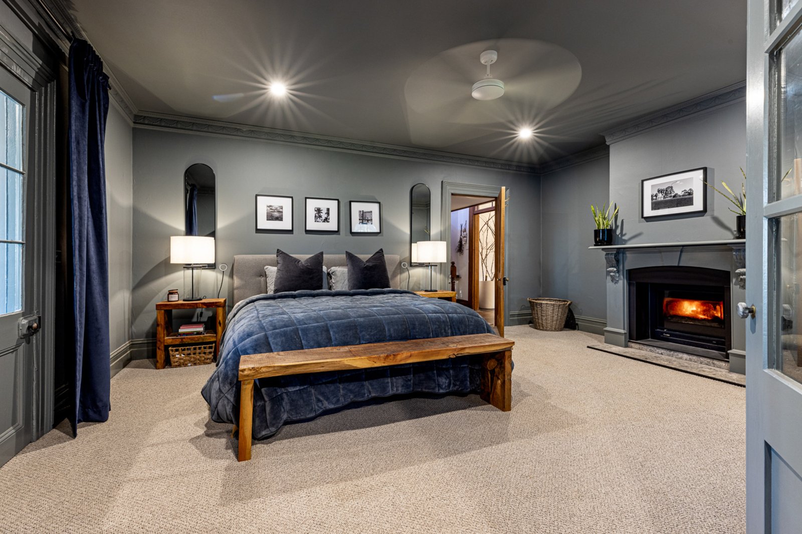 The home comprises four generous bedrooms and three well-appointed bathrooms, providing ample accommodation for families or guests. The master bedroom is a serene retreat, complete with its own fireplace and a timeless elegance that reflects the home’s heritage.