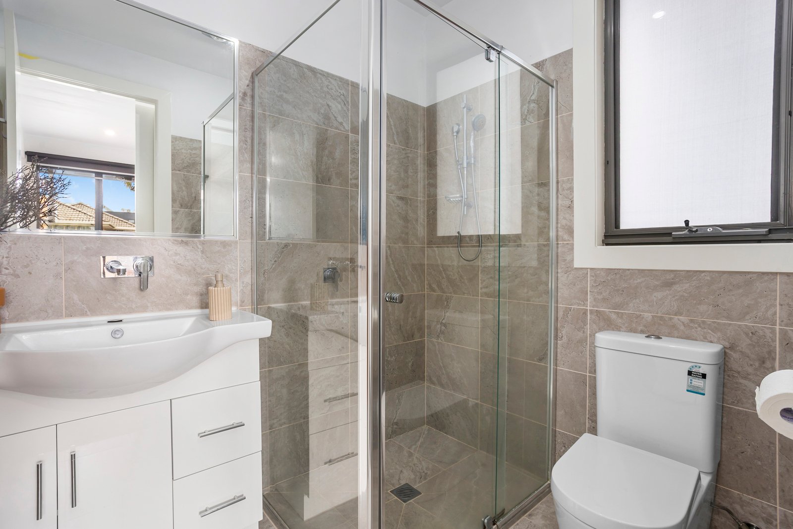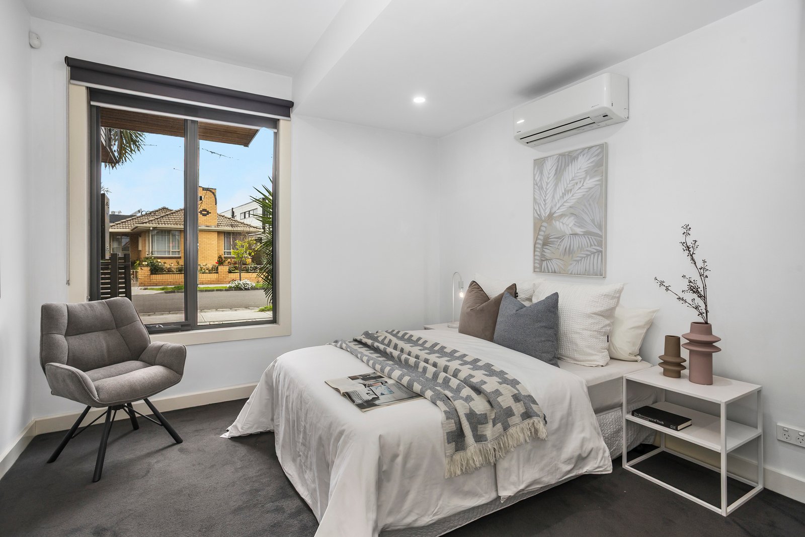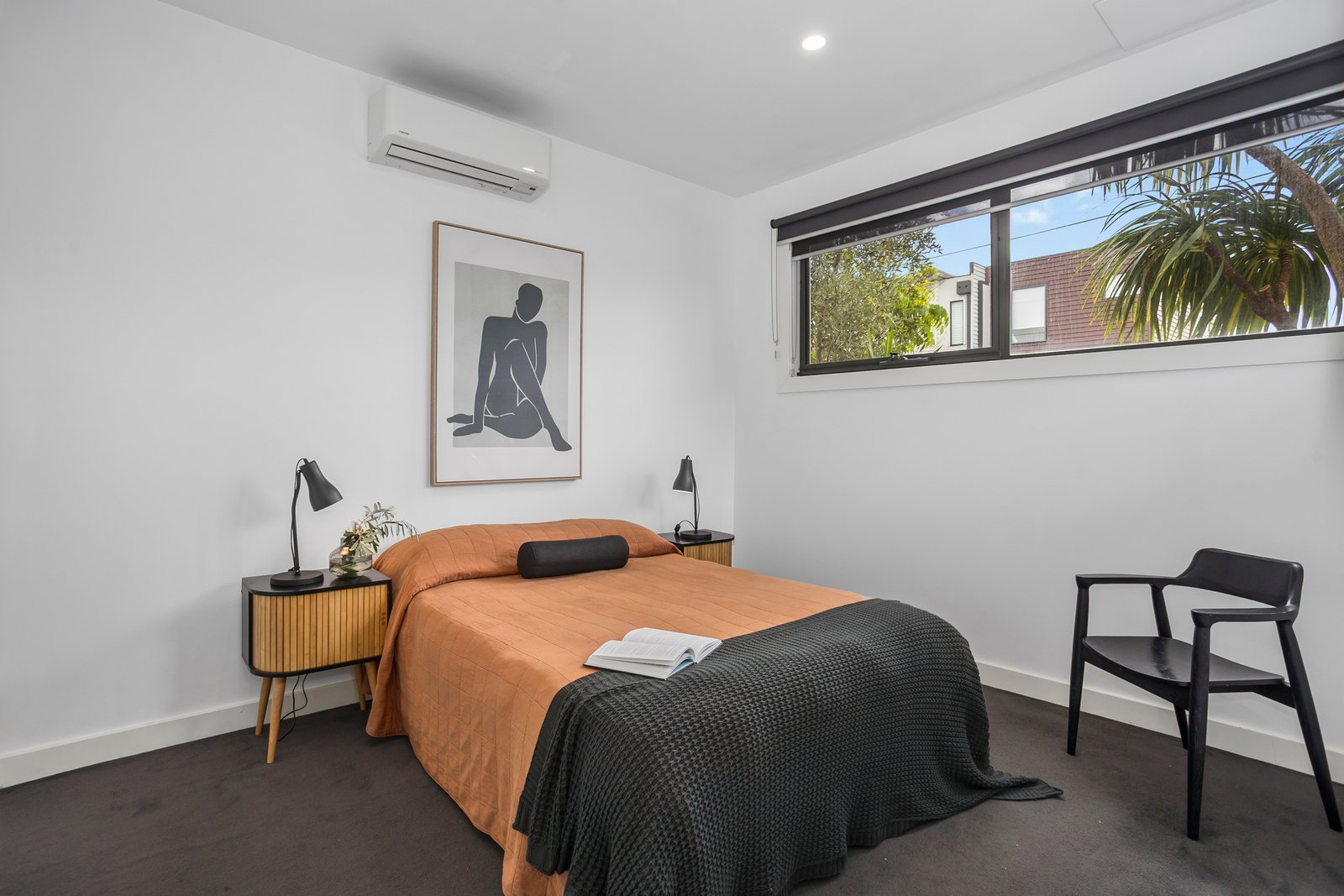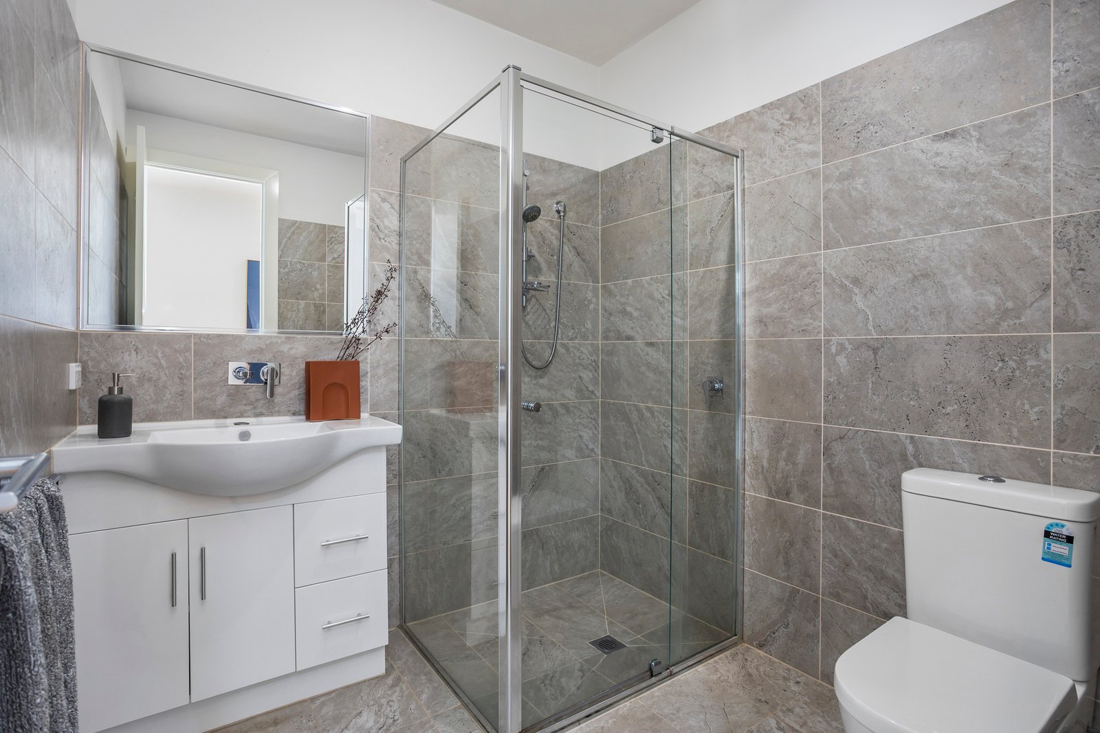 Throughout, quality finishes abound, polished floorboards grace the upper level and entrance, soft carpet cushions the bedrooms, while contemporary grey floor-to-ceiling tiles and white cabinetry create a fresh, sophisticated feel in both bathrooms. Split-system heating and cooling in the living room and bedrooms ensure year-round comfort.