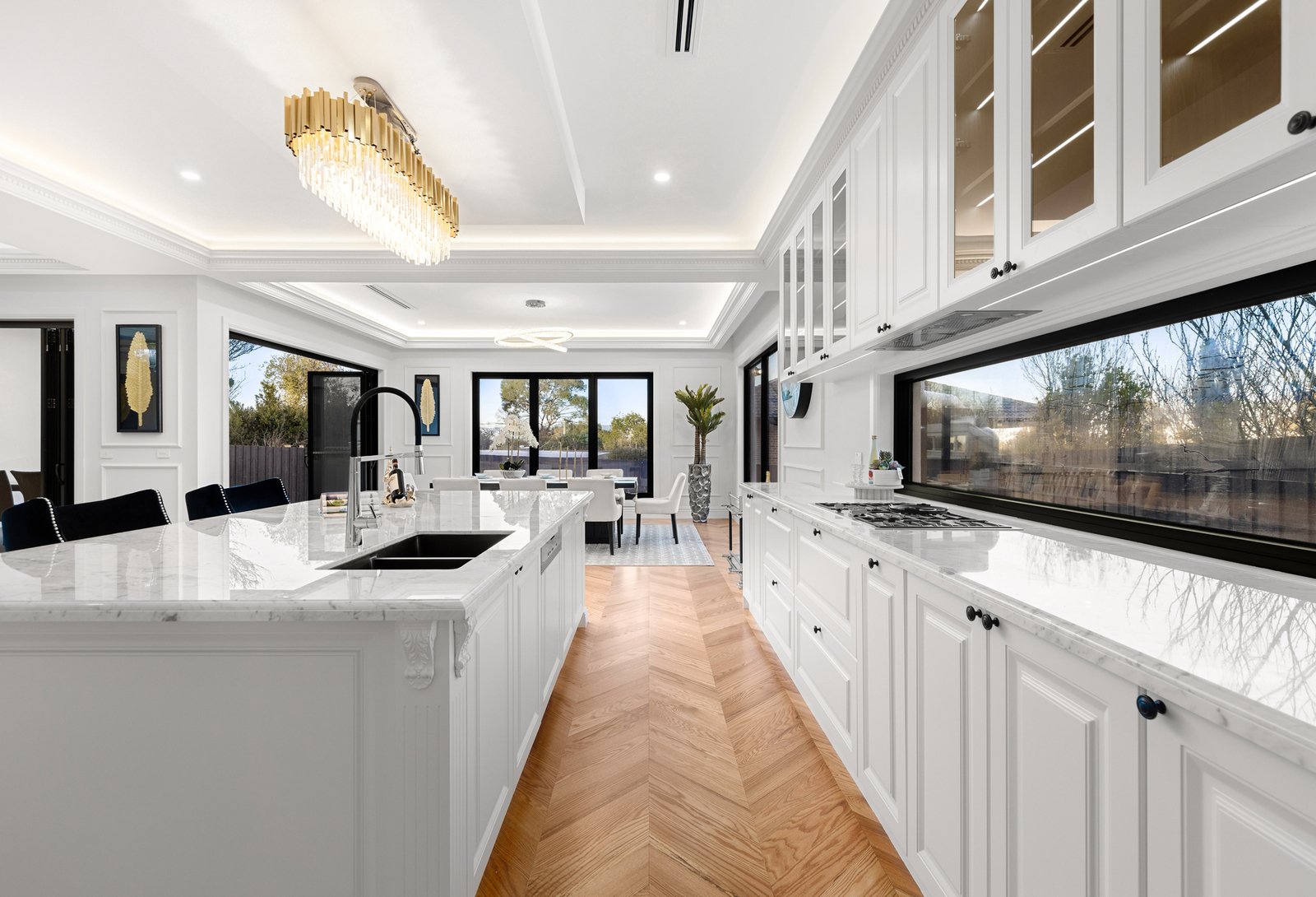 Distinguished by grandeur and graced with craftsmanship of the highest calibre, this remarkable French Provincial residence sets an unparalleled benchmark for luxury family living in the prestigious heart of Glen Waverley. Architecturally designed and exquisitely finished, this one-of-a-kind home combines timeless elegance with uncompromising contemporary comfort, unfolding across two expansive levels.