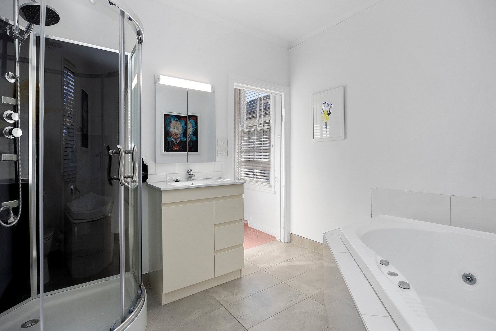 • Stylish central bathroom featuring shower, toilet and indulgent spa bath