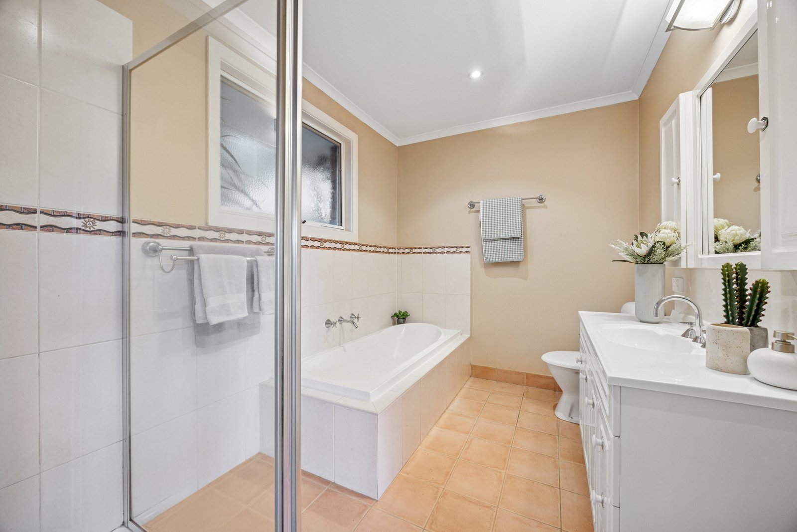 Designed for entertaining, the kitchen features European appliances, including stainless-steel Electrolux oven, and a fully plumbed outdoor entertainer’s bench. This home offers ducted heating and cooling, fan-cooled, robe-fitted bedrooms, a large separate laundry, a convenient second toilet and double garage.