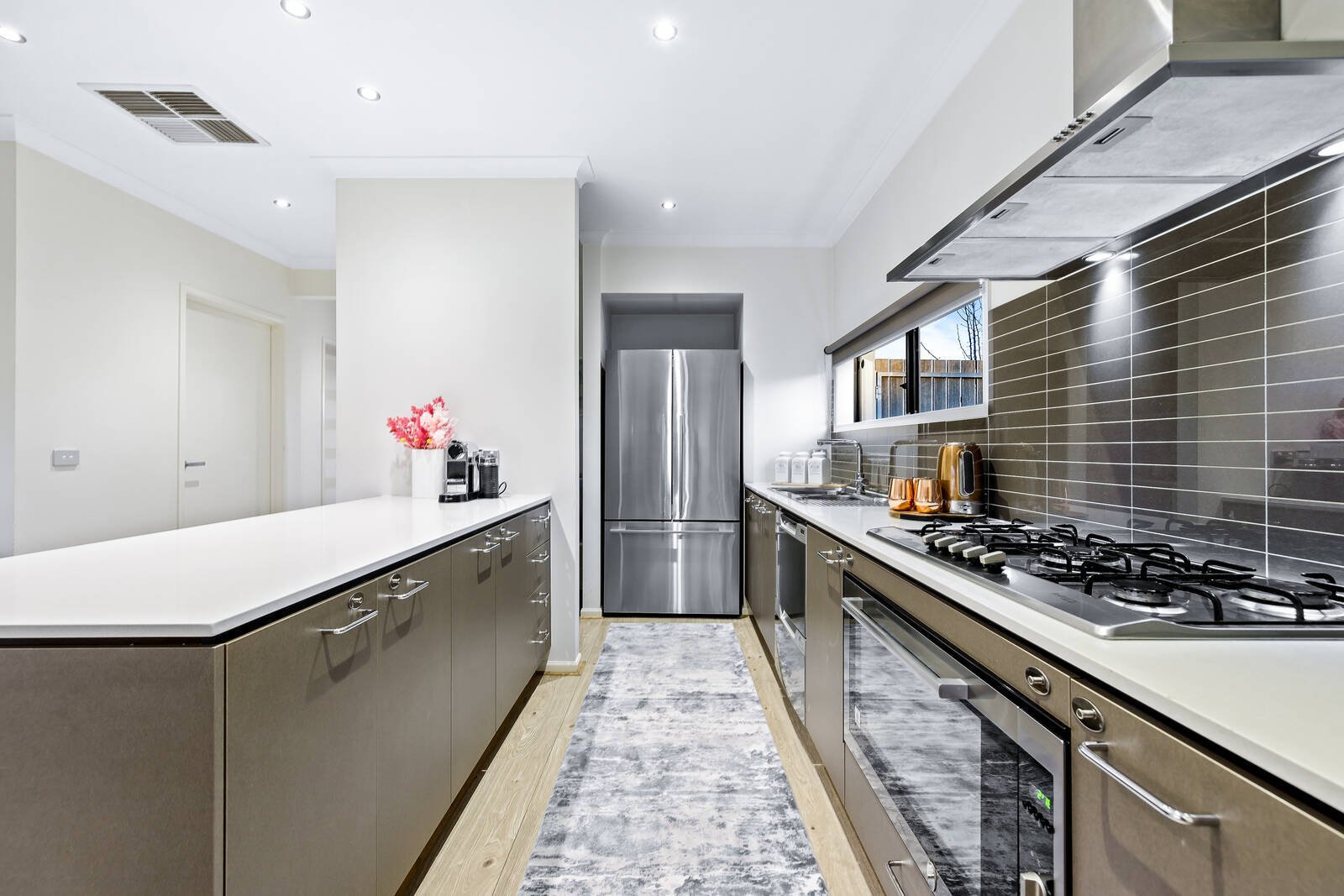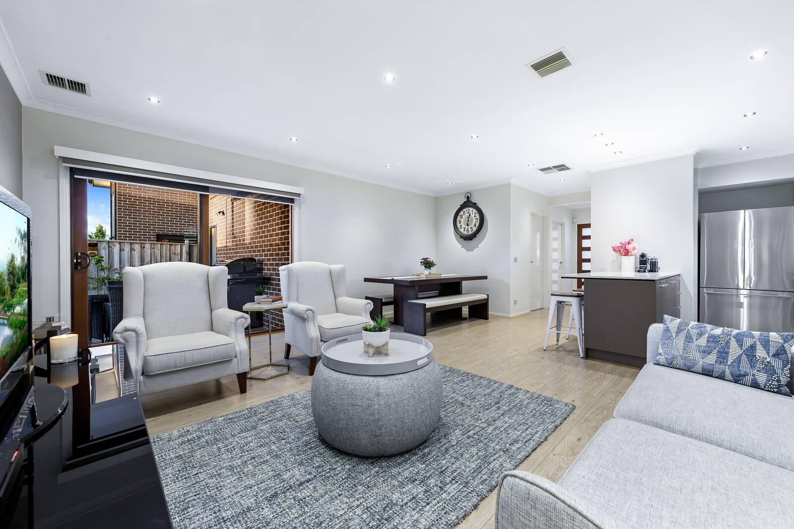 The seamless indoor and outdoor entertaining zones complement the spacious open plan living and dining area featuring a gourmet kitchen equipped with stone bench-tops, tiled splash-back, breakfast bar and cleverly appointed storage space. Furthermore, entertaining your friends and family will be a breeze with access to the north facing courtyard, grassy lawn and side yard with rear access from the garage.