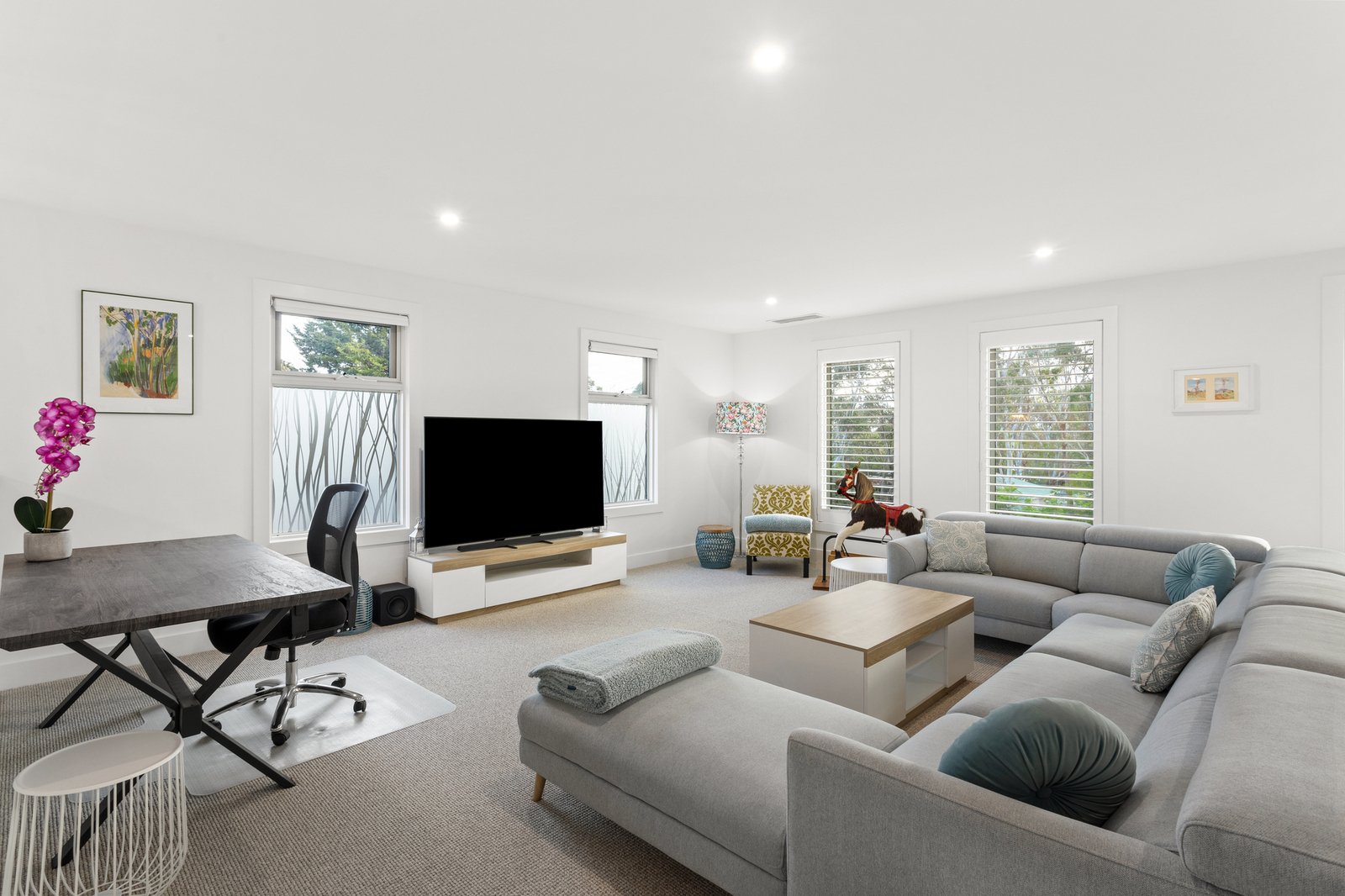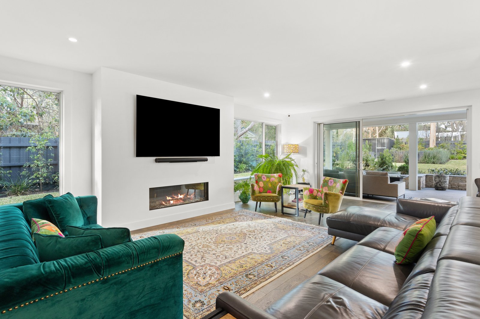 Reverse-cycle heating and cooling, a 14kW solar system with battery and dual Tesla chargers all contribute to the home’s 7-star energy rating, while CCTV security, intercom, smart home technology, a double garage, and plantation shutters spanning the front reinforce its high-spec credentials. A professional office with botanical wallpaper adds a thoughtful design touch, with Somers General, Somers Primary School, Balnarring Village and the Peninsula’s rich culinary and viticultural landscape all within easy reach.