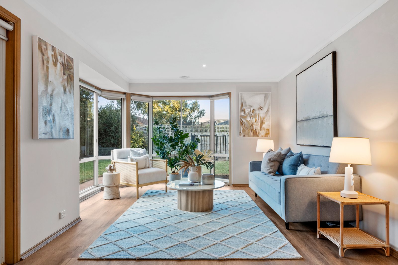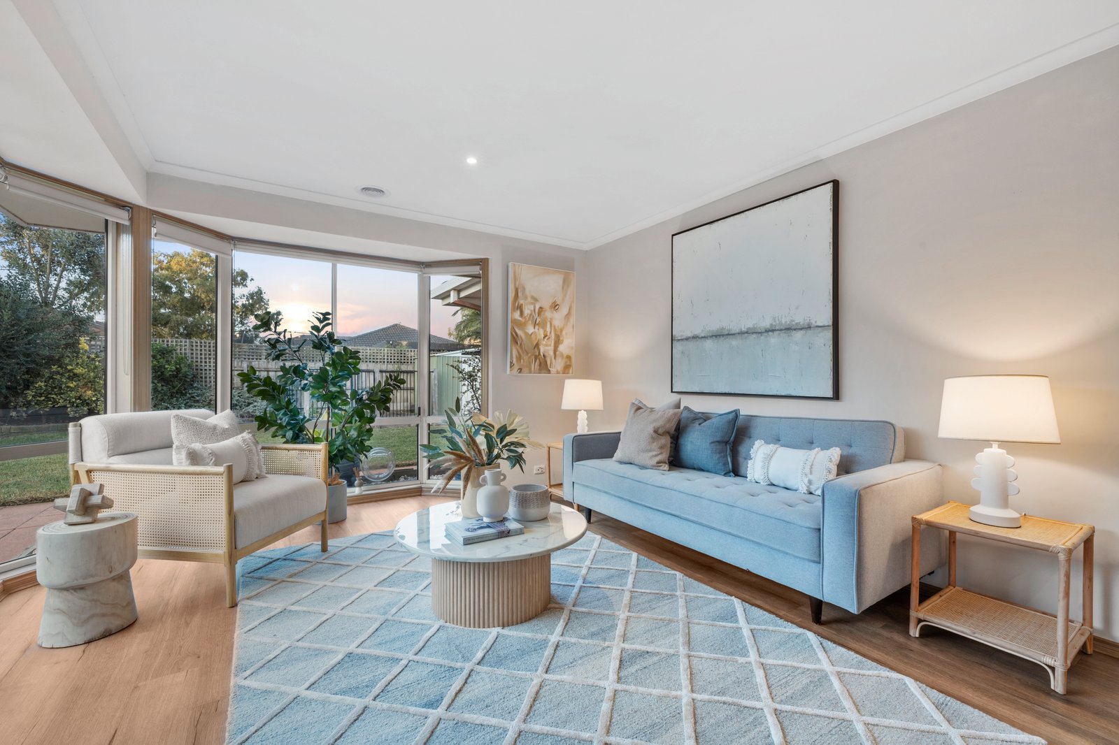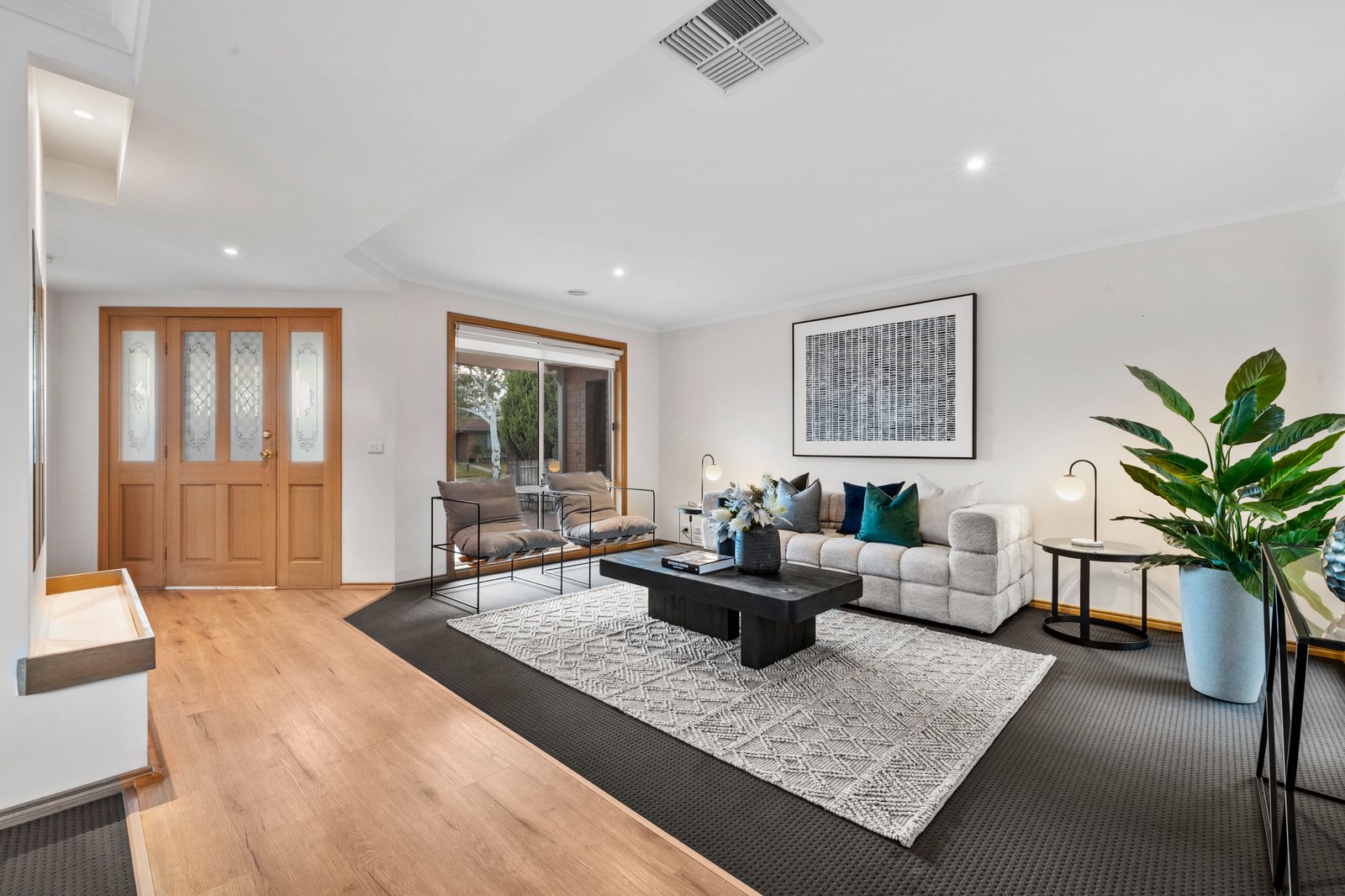 A welcoming entry behind a classic picket fence reveals a home that radiates warmth and style. Awash with natural light, the refined interiors feature sleek timber-look flooring and an intelligent layout with multiple living zones. A spacious formal lounge and dining room provide a sophisticated setting for hosting, while the expansive open-plan living and meals area is perfect for relaxed family time.