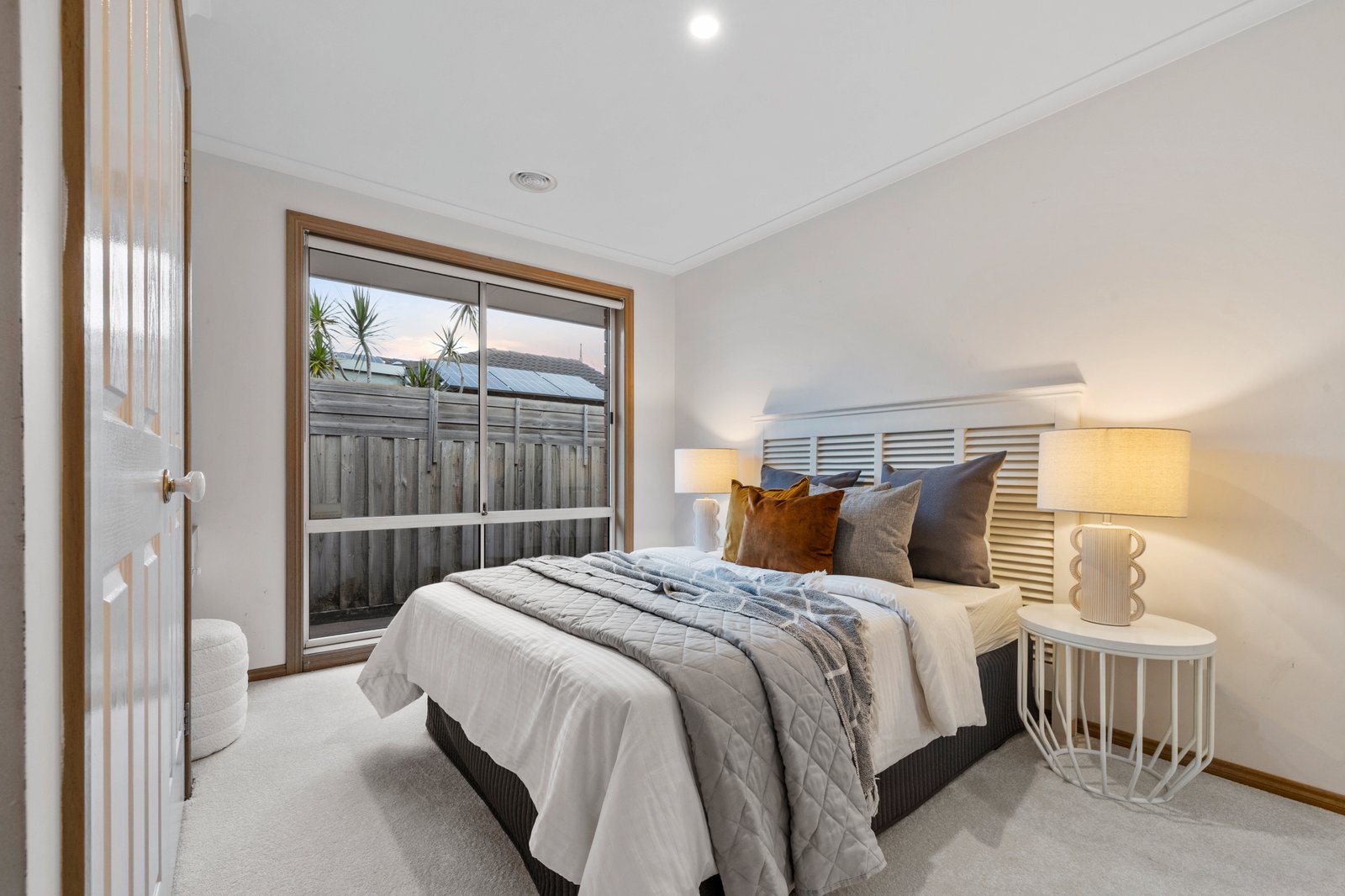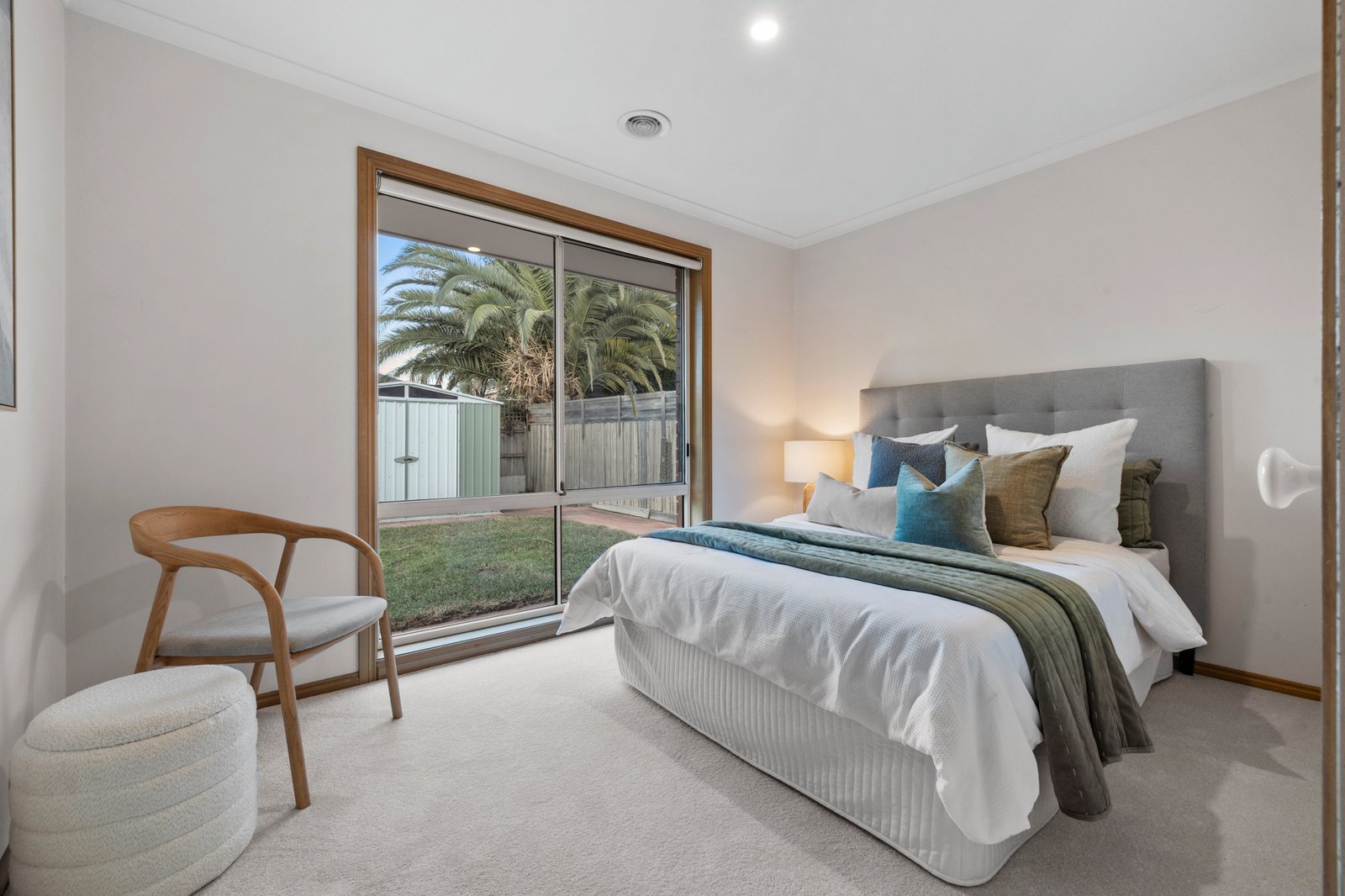 At the heart of the home, a striking Caesarstone kitchen takes centre stage, equipped with a 900mm gas cooktop and oven, dishwasher, abundant storage, and picturesque views of the serene backyard. Sliding glass doors connect seamlessly to a generous alfresco deck, creating an idyllic indoor-outdoor flow ideal for year-round entertaining. Beyond, ample lawns offer a secure space for kids and pets to play freely.
