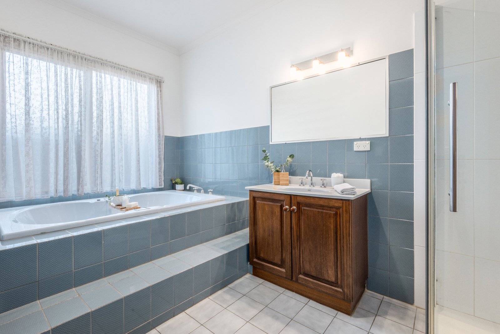 The spacious main bedroom features generous walk-in robes and a tastefully presented ensuite with dual vanity. Three additional bedrooms include built-in robes, serviced by a luxurious main bathroom with spa bath, separate shower, timber vanity, modern lighting and a separate wc.
