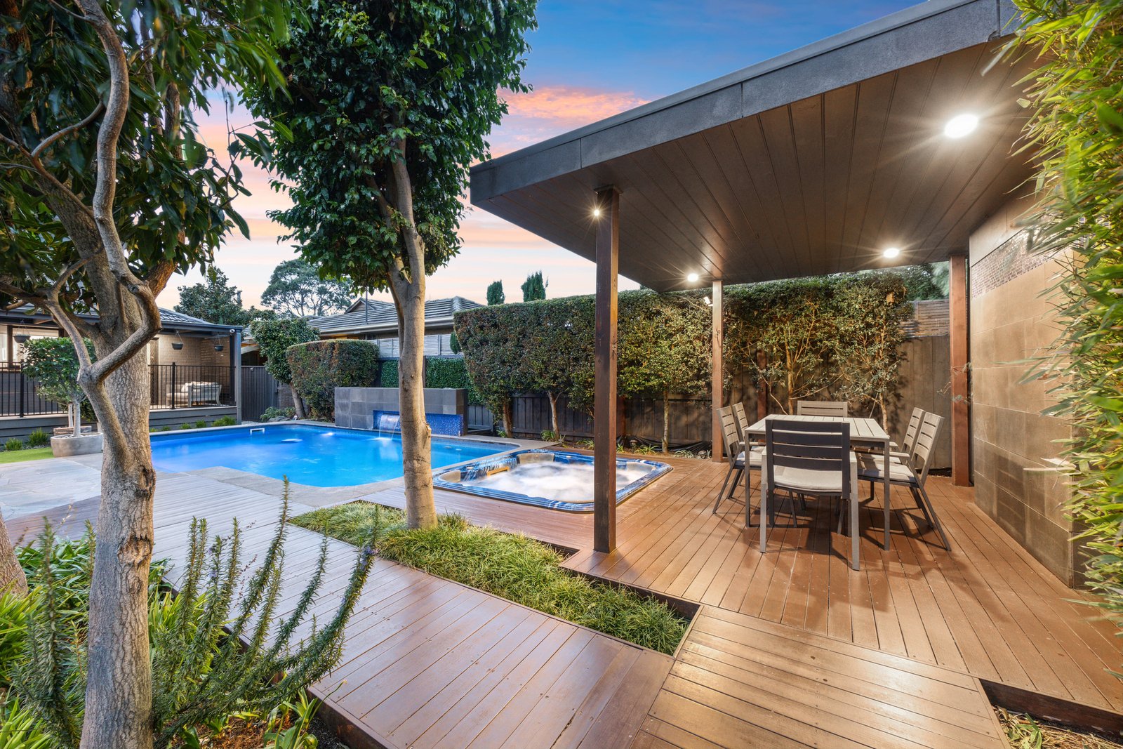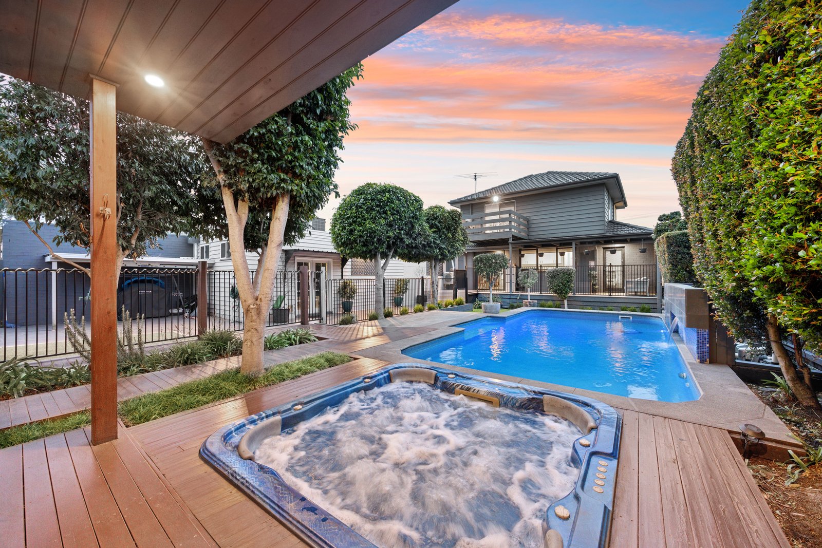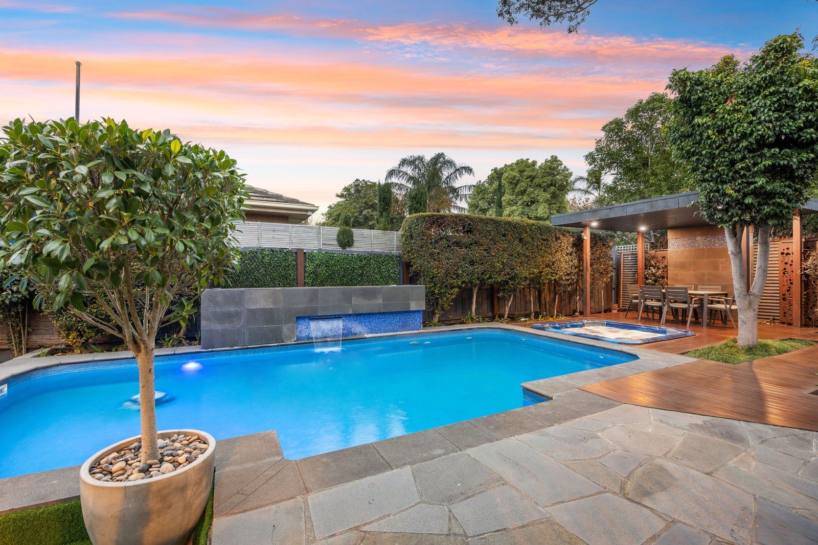 Luxe and light-filled with fully-tiled bathrooms (each with a designer vanity, one with a freestanding bath), the home is impeccably styled with hardwood floors, dual blinds and plush carpets. Centrally heated and reverse-cycle air conditioned with an additional gas-fireplace, the home is appointed with a Tesla car-charger, and secured by Samsung keyless entry, Smartphone-operated alarm and 8-camera CCTV system. There are even Smart Home features operating everything from auto-gates, to video-entry, to garden lights and spa automation.