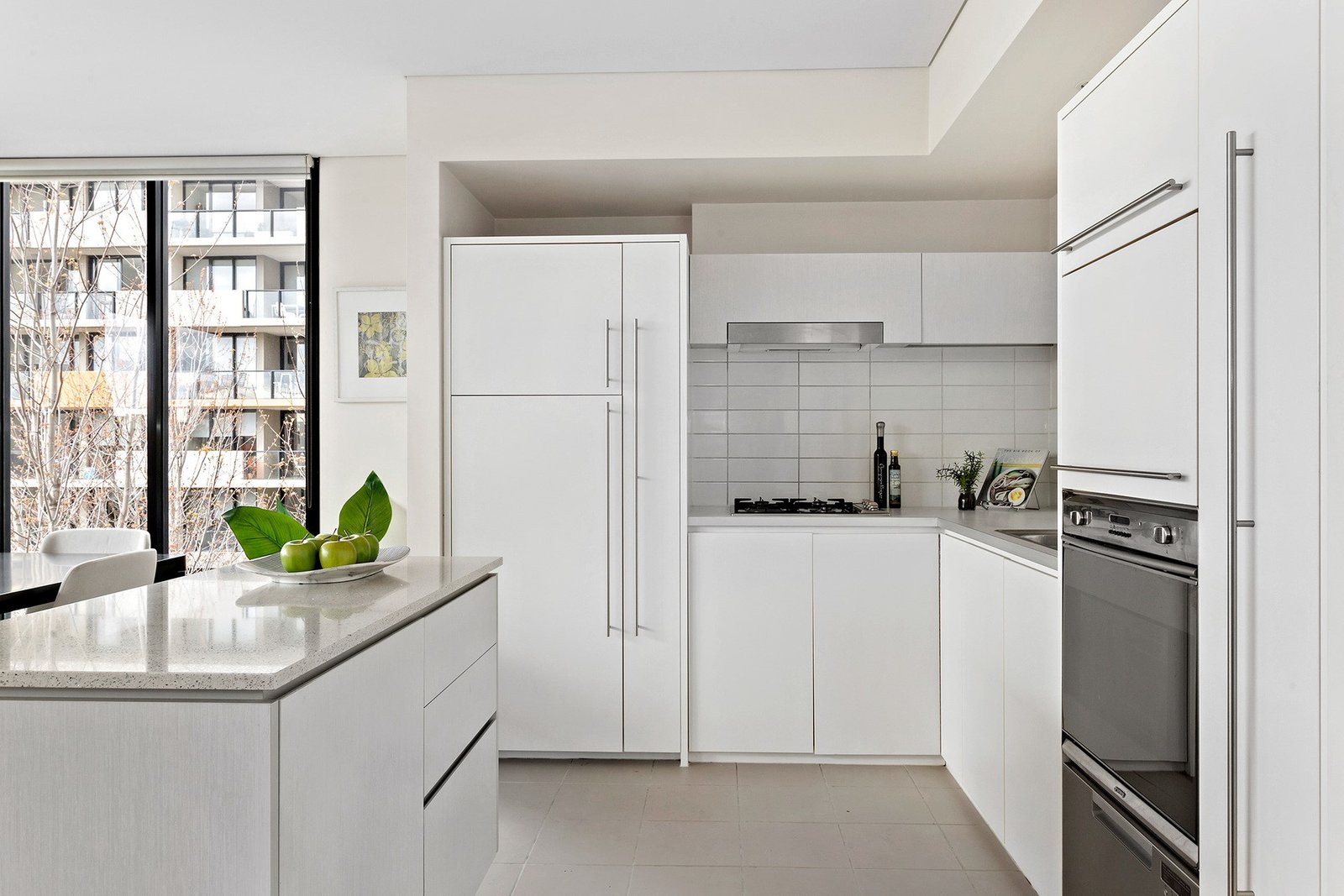 The sleek, modern kitchen is equipped with stainless steel appliances, integrated fridge, a full-height pantry, and a versatile portable island bench—ideal for both everyday living and entertaining. The open-plan living and dining area flows effortlessly onto a large private balcony, perfect for alfresco dining or relaxed summer barbecues.