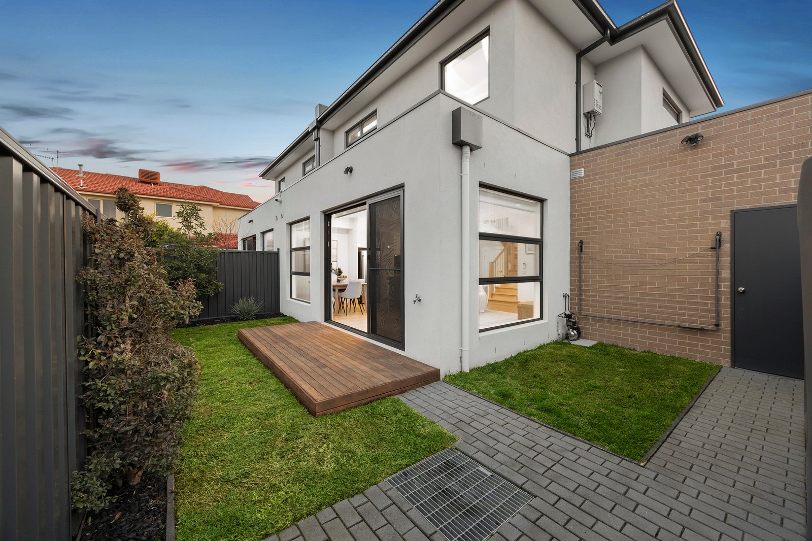 Step outside to a private northeast-facing courtyard, where a timber deck and paved terrace offer space to relax or entertain, framed by low-maintenance gardens.