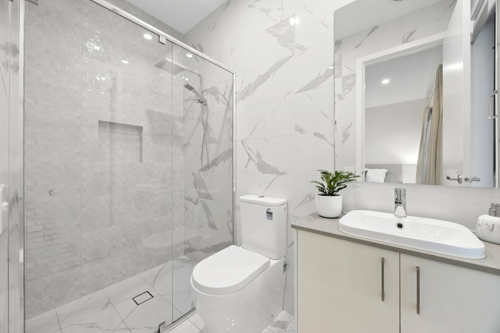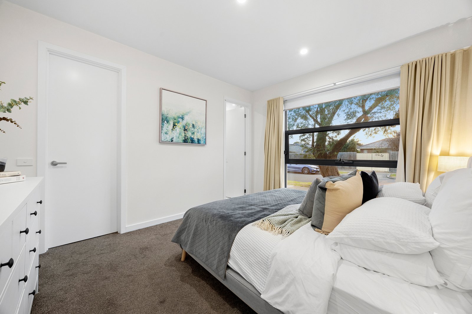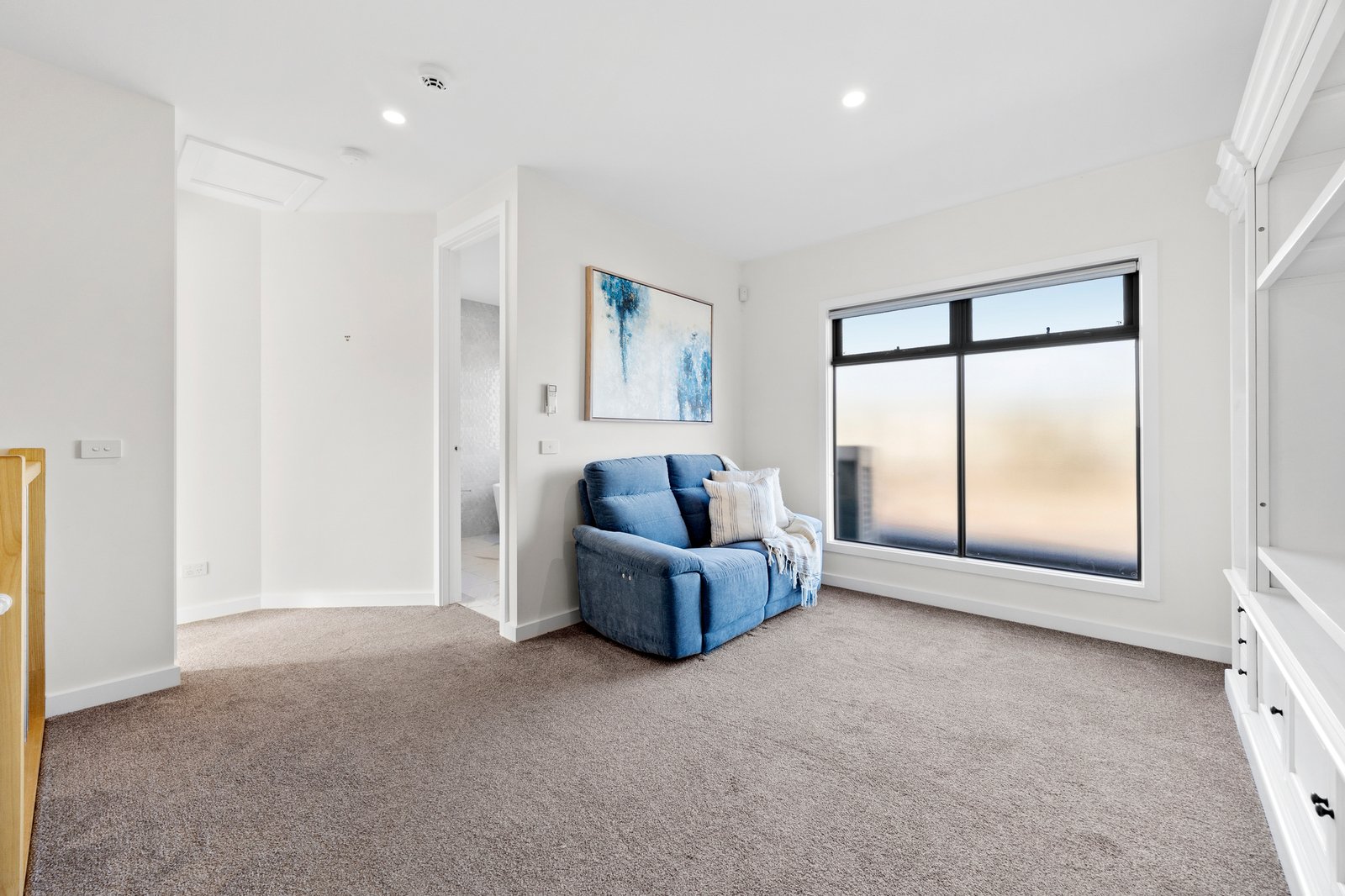 Beyond a covered porch entry, wide-engineered oak floors flow through the ground level, bringing warmth and continuity. Privately positioned at the front, the master bedroom is awash with sunlight and complemented by a walk-in robe and a luxe ensuite. Further along, a powder room adds practical amenity for guests.