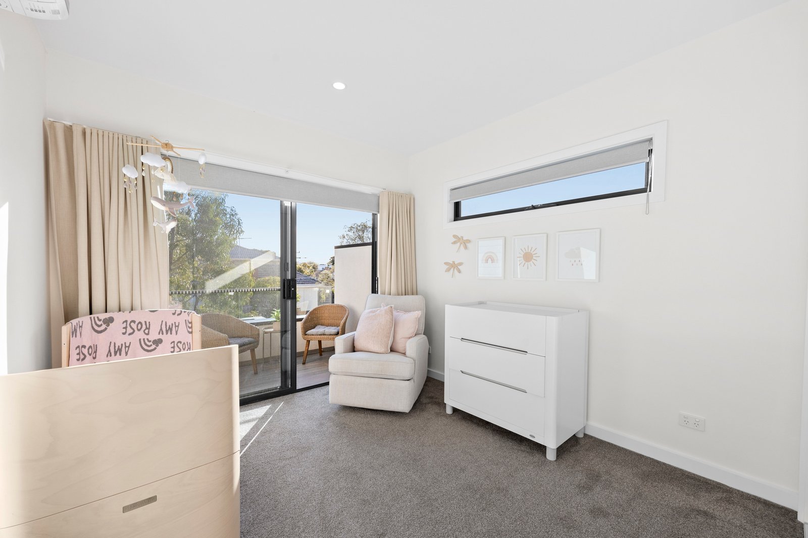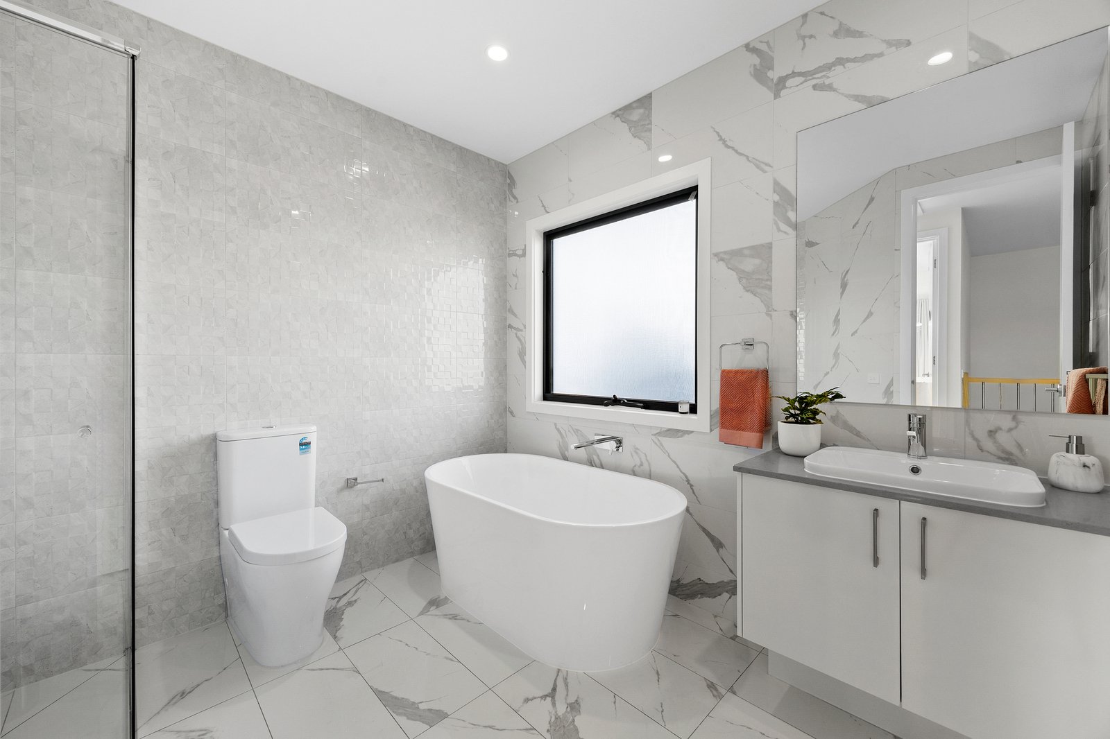 Upstairs, a light-filled retreat offers flexibility as a second living area. Two generous bedrooms - each with built-in robes - enjoy treed outlooks; one opens to a private balcony, the other through a beautiful picture window. A fully tiled family bathroom, complete with a freestanding soaker tub and separate shower, serves this level with style and comfort.