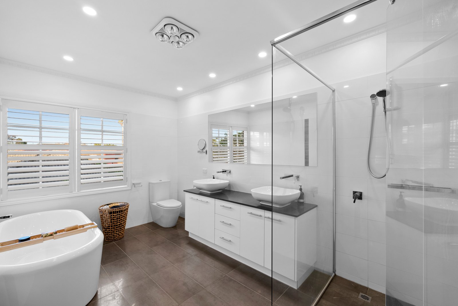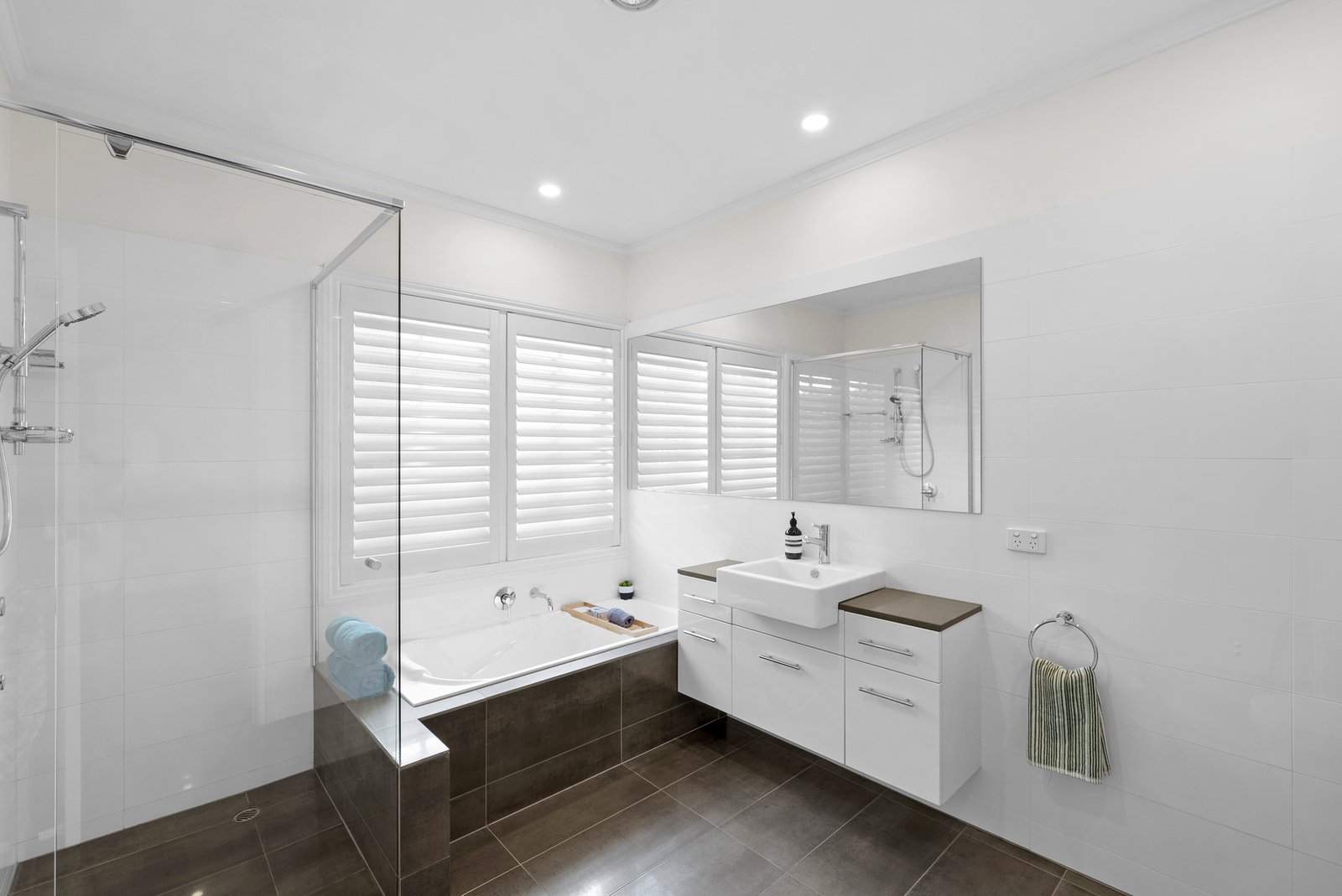 Upstairs, the accommodation is zoned for rest and retreat. The master suite unfolds with indulgent dimensions, enhanced by a private sitting area, both walk-in and built-in robes, and a luxurious ensuite complete with twin vanities, a deep soaker tub, and refined finishes. Two additional bedrooms on this level - each with extensive robes - are serviced by an equally impressive family bathroom.