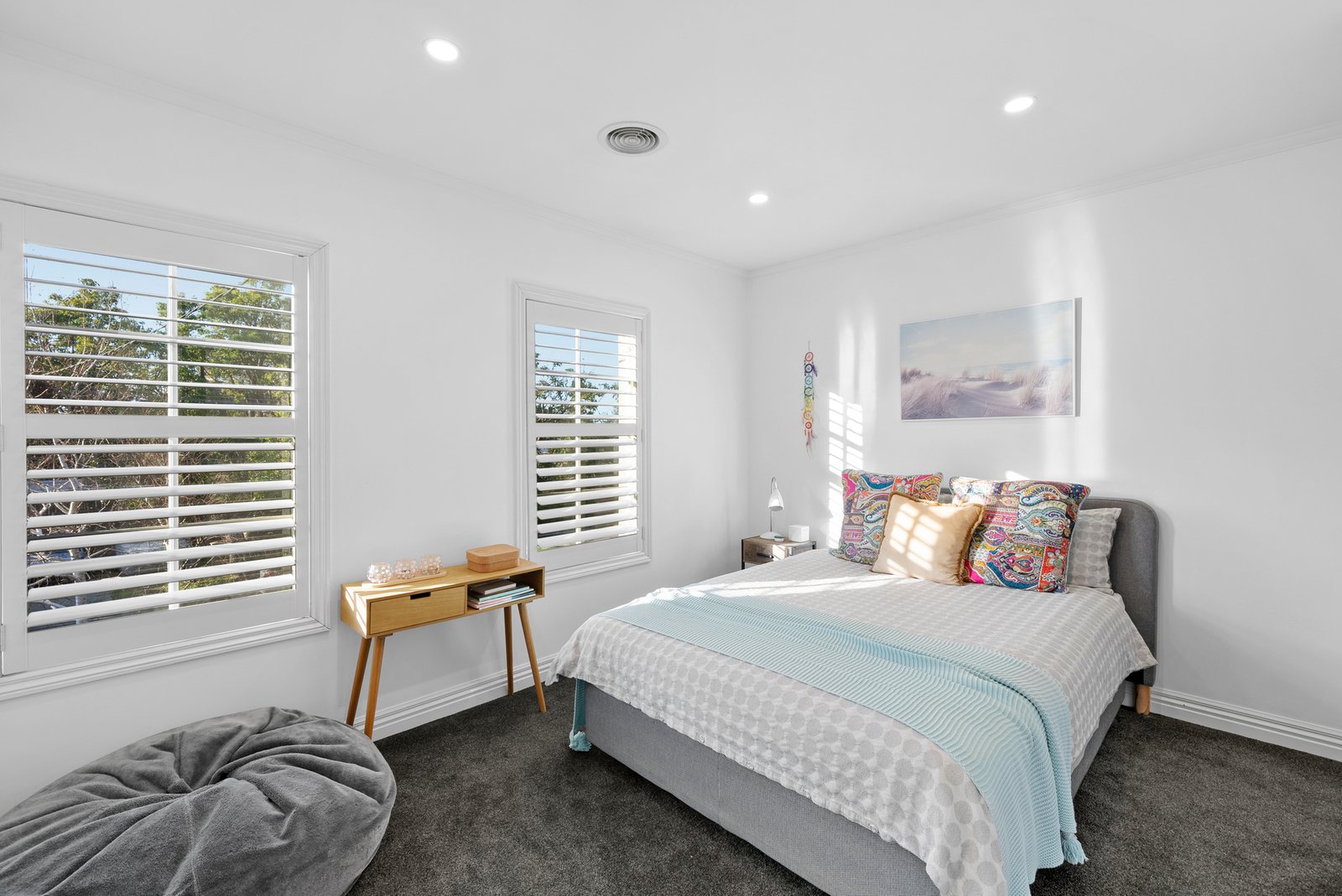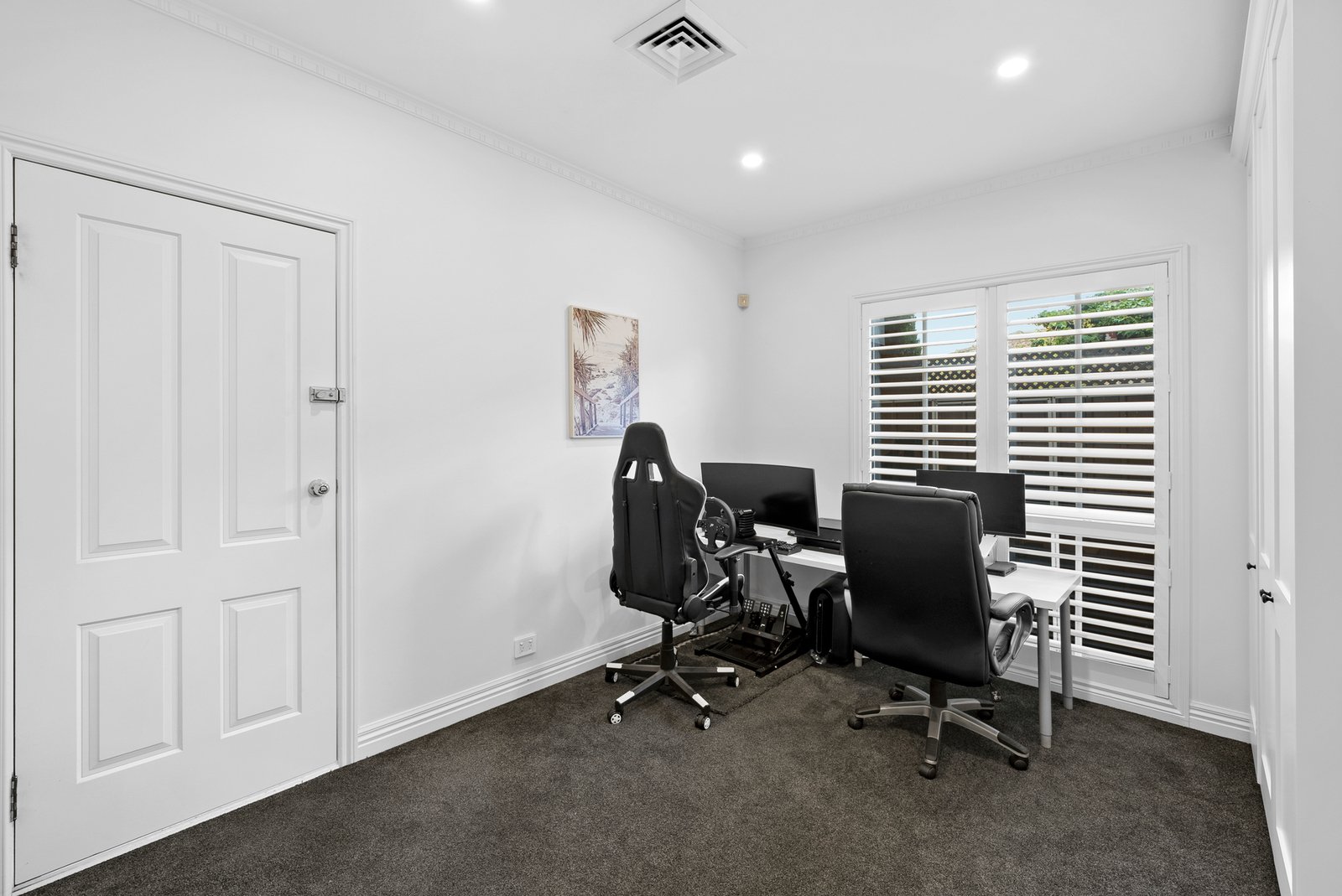 On the ground floor, a fourth bedroom offers flexibility as a home office, featuring built-in robes and access to a nearby bathroom.