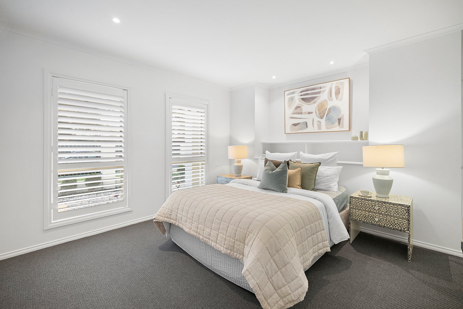 Inside, warm timber floors extend through sun-drenched, spacious rooms, each gently layered with plantation shutters that filter natural light to create an inviting ambiance. The interiors flow seamlessly, balancing openness with moments of intimacy, welcoming both relaxed living and sophisticated entertaining.