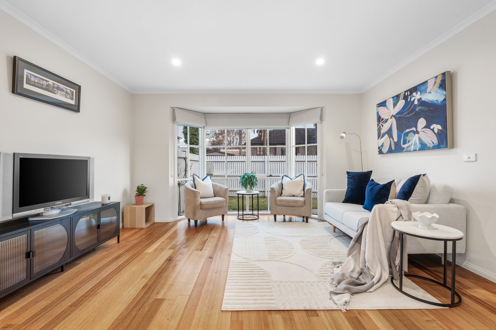 Upon entry, platinum presentation, timber floors and a welcoming ambience filter through a beautifully bright open-plan living/dining area, complemented by a pristine kitchen boasting ample storage.