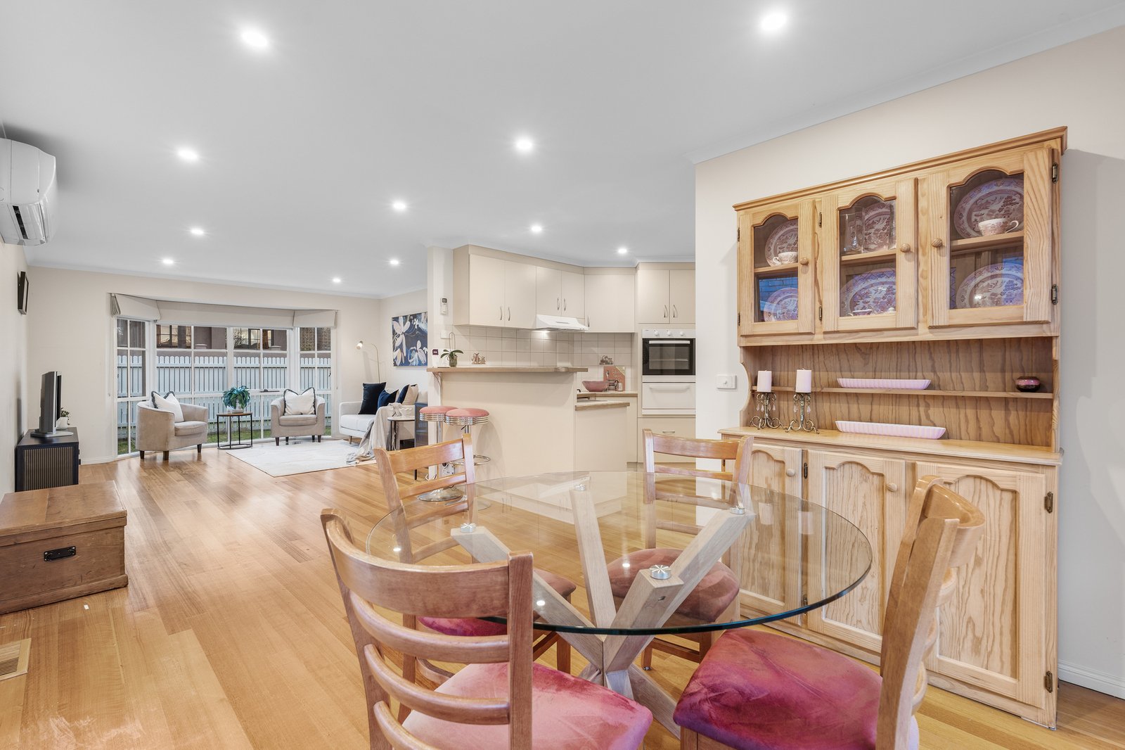 Upon entry, platinum presentation, timber floors and a welcoming ambience filter through a beautifully bright open-plan living/dining area, complemented by...