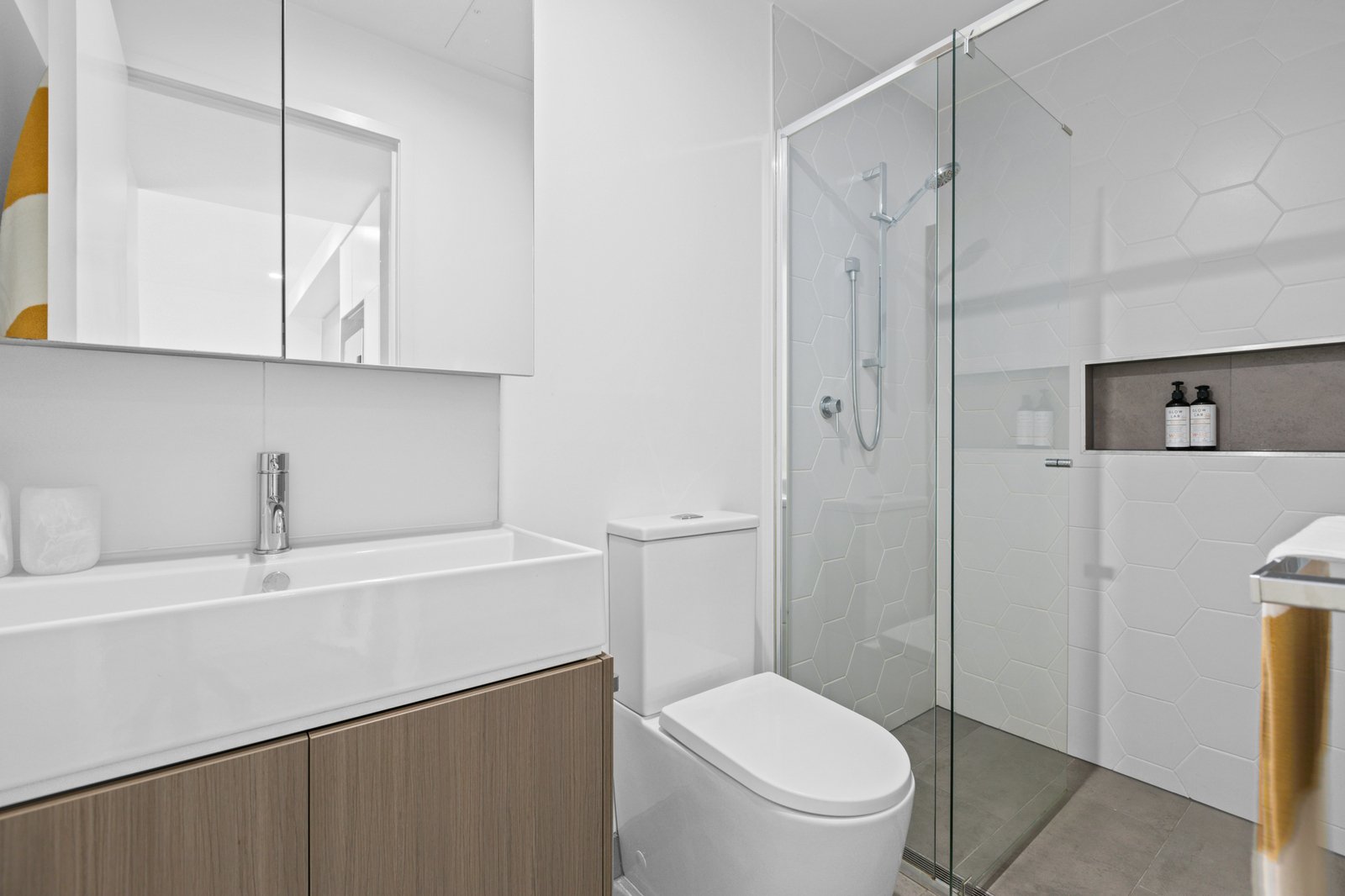 Designed for peace and privacy with luxe bathrooms including a private ensuite for the main bedroom, this prestige apartment offers value-added extras at every turn. Optioned up with a bespoke moveable island-bench for the sleek kitchen and a discreet European laundry for easy living, there’s mirror-storage for each bathroom, and dual day/night block-out and e-screen blinds for added privacy.