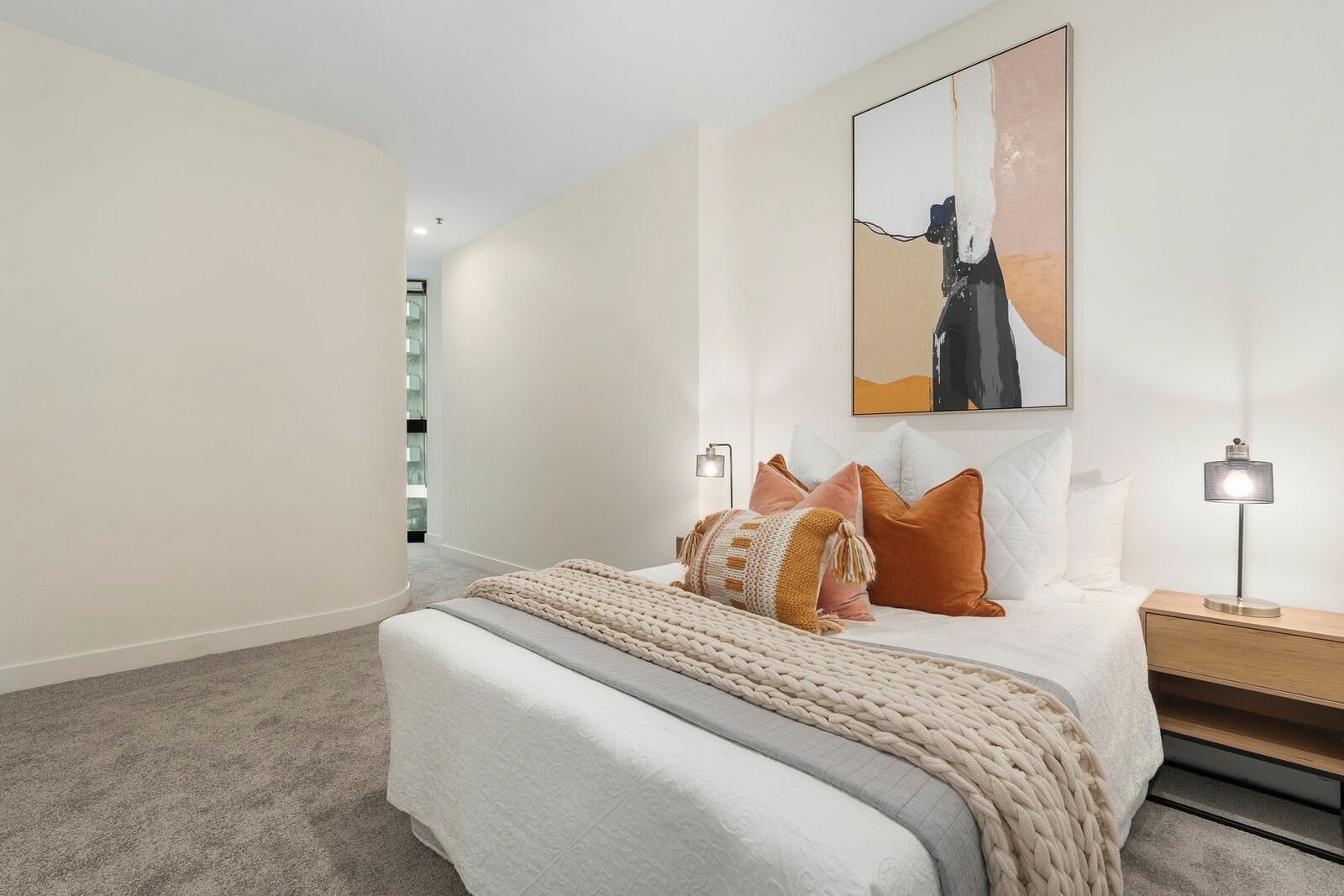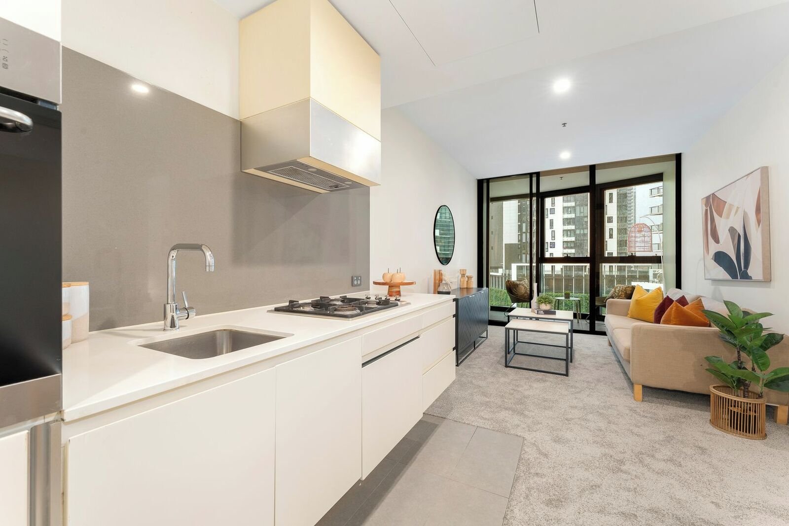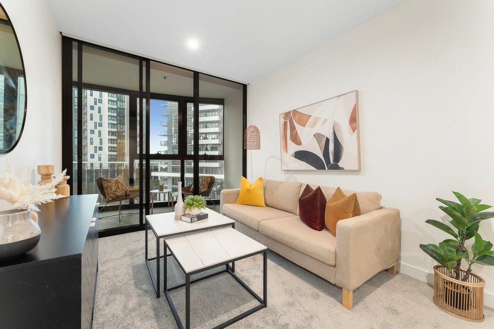 Wake up to breathtaking city views in this elevated two-bedroom apartment, perfectly positioned above vibrant Clarendon Street. Floor-to-ceiling windows flood the spacious living and dining area with natural light, flowing seamlessly to a private balcony ideal for evening drinks.