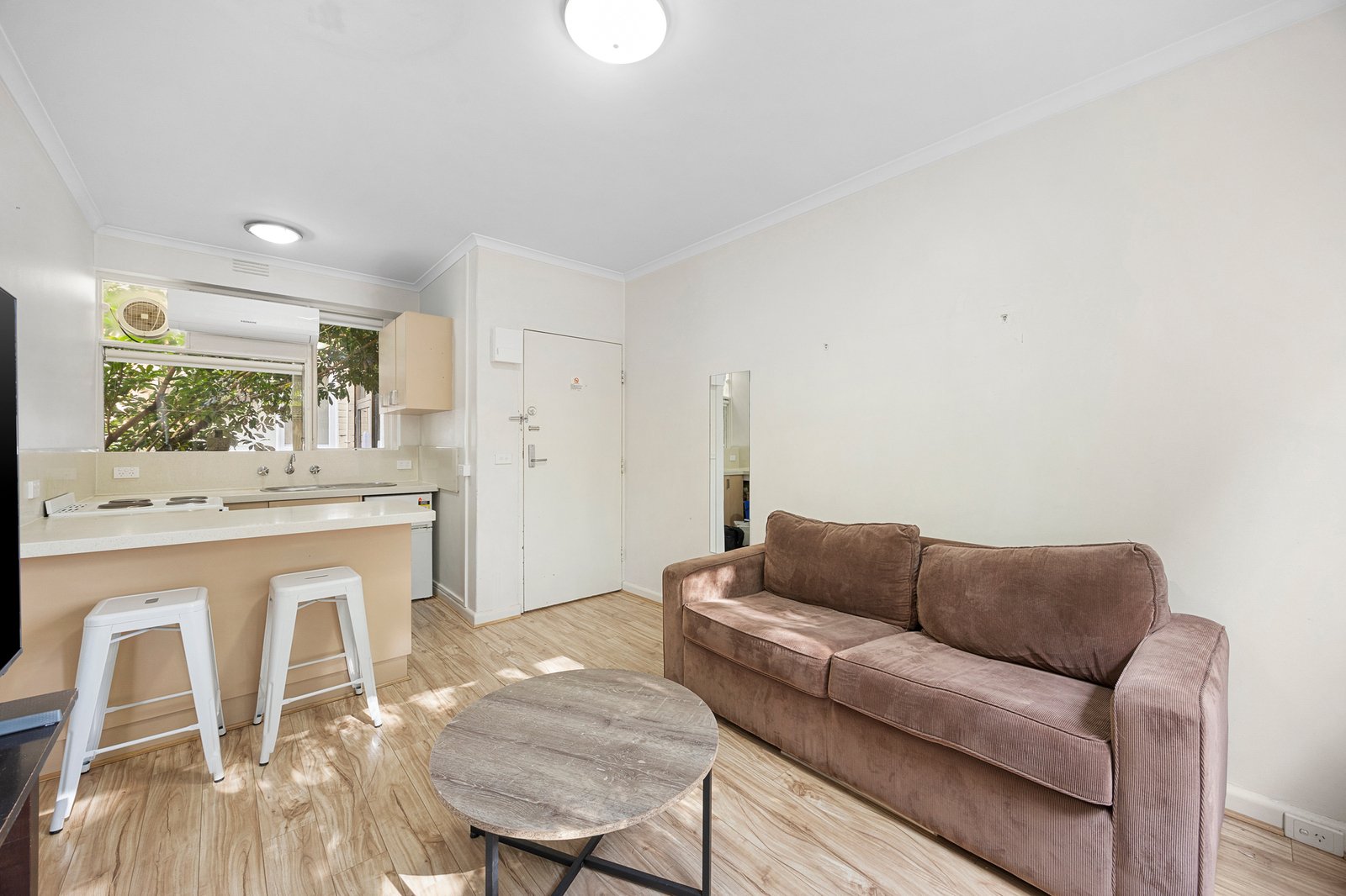 Tucked away at the quiet rear of the complex, this single-bedroom apartment combines a functional layout with low-maintenance appeal. The open plan living and kitchen zone is enhanced by warm wood flooring and large windows, and air conditioning, while the bedroom enjoys direct access to the ensuite bathroom. Perfect for first-home buyers, investors, or those seeking a simple city base.