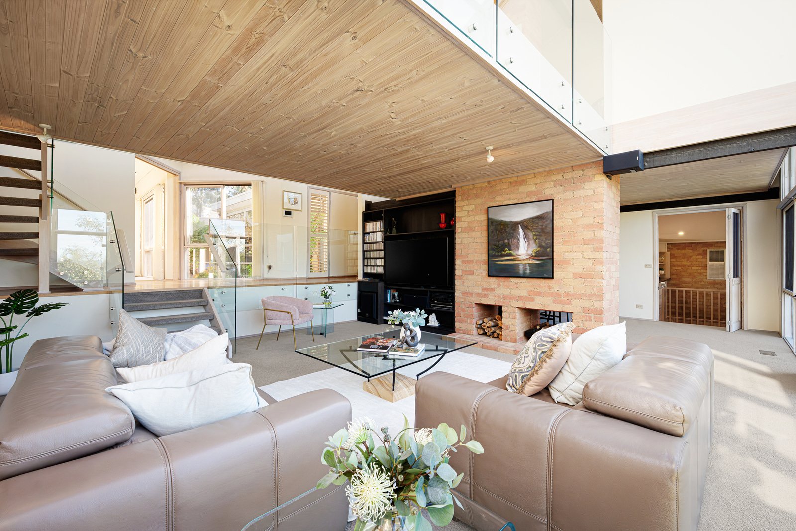 Stunning floor-to-ceiling double glazed windows paint The Dandenong Ranges like a ‘living work of art’ to be enjoyed from the grand living spaces which stretch across multiple levels of this signature home.