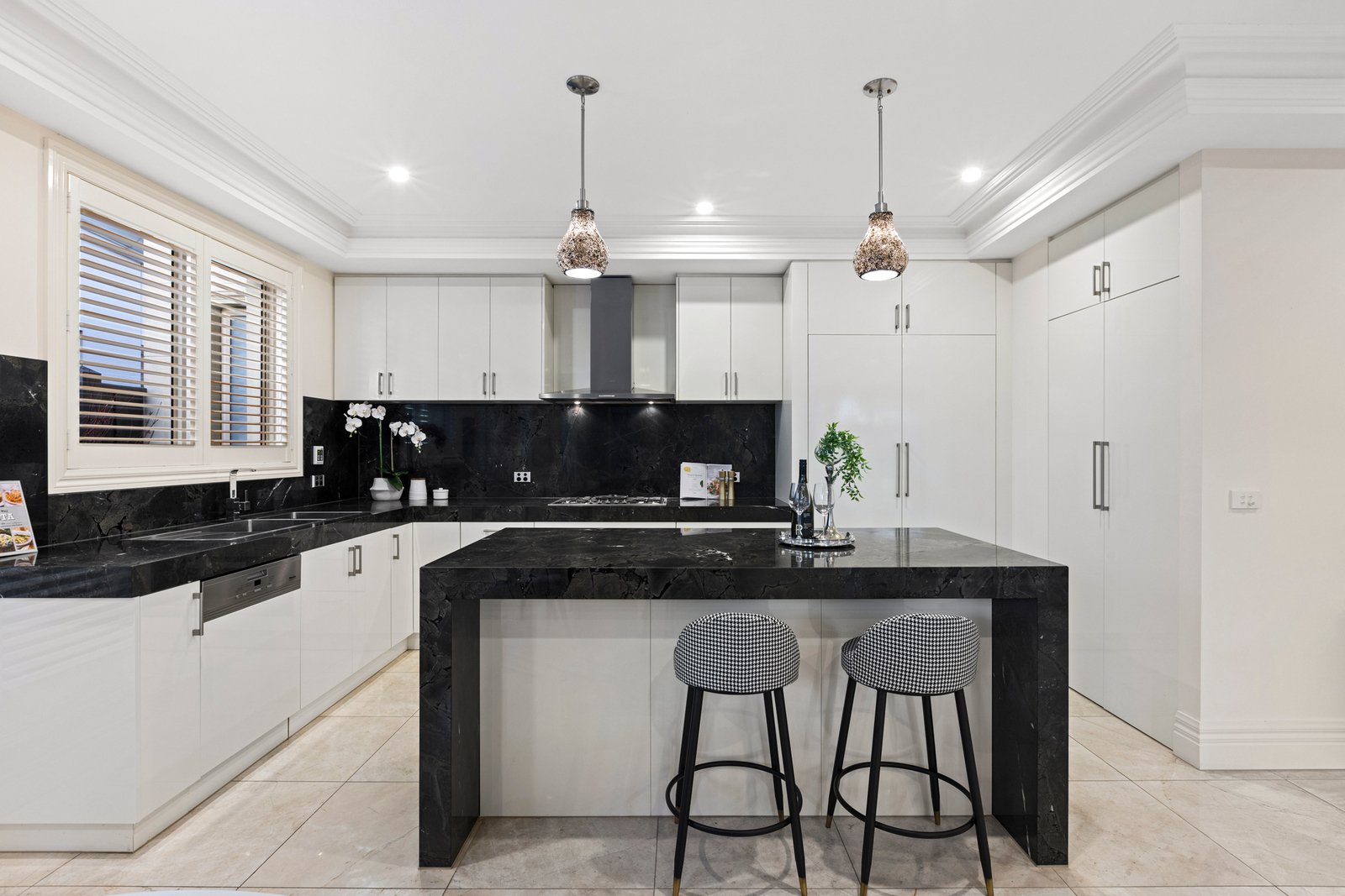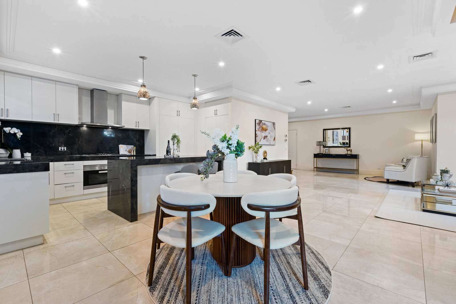 Superbly presented with attention to detail this home oozes style, class and refinement. Impressive entrance highlighting wrought iron doors and gleaming marble tiles expanding into an extensive open plan living/dining area featuring sensational kitchen with exquisite marble quartz bench tops and splashbacks, Emporite cabinetry, Miele appliances & an integrated fridge & freezer. Step outside to a picture perfect entertaining area with beautiful marble tiled al fresco and fully landscaped courtyard complete with light feature.