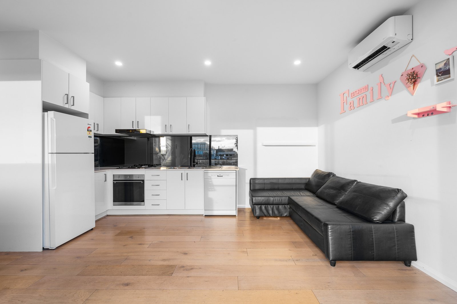 Timber flooring leads you upstairs to a spacious, light-filled open-plan living and dining area, seamlessly connected to a generous balcony—perfect for entertaining or enjoying the morning sun. The gourmet stone kitchen boasts stainless steel appliances and ample cabinetry, ideal for home chefs and everyday living.