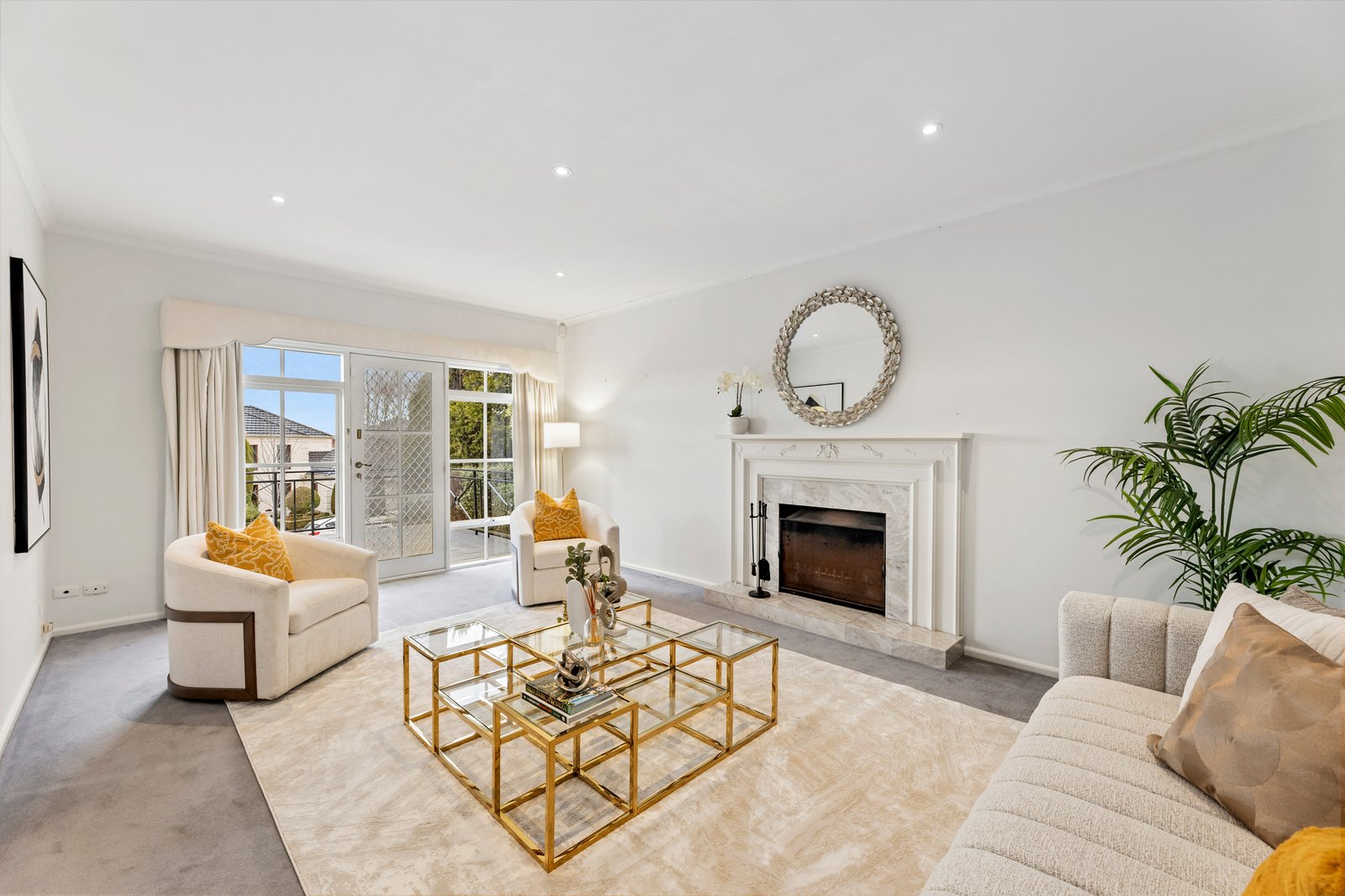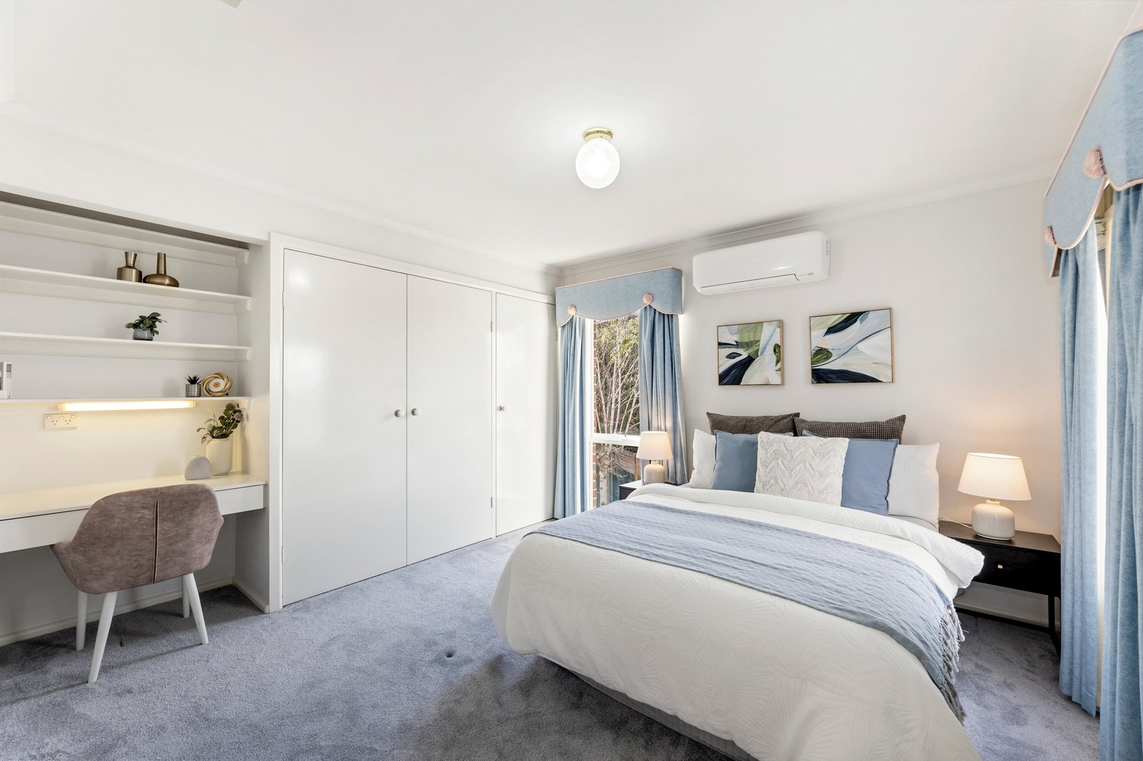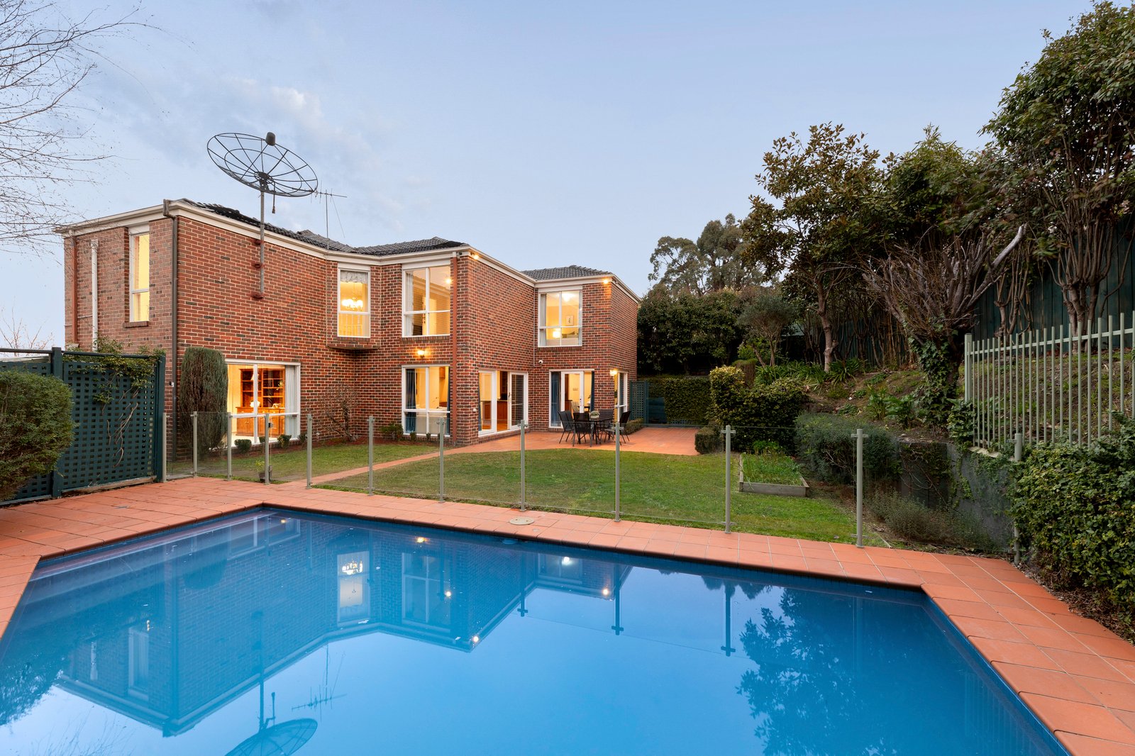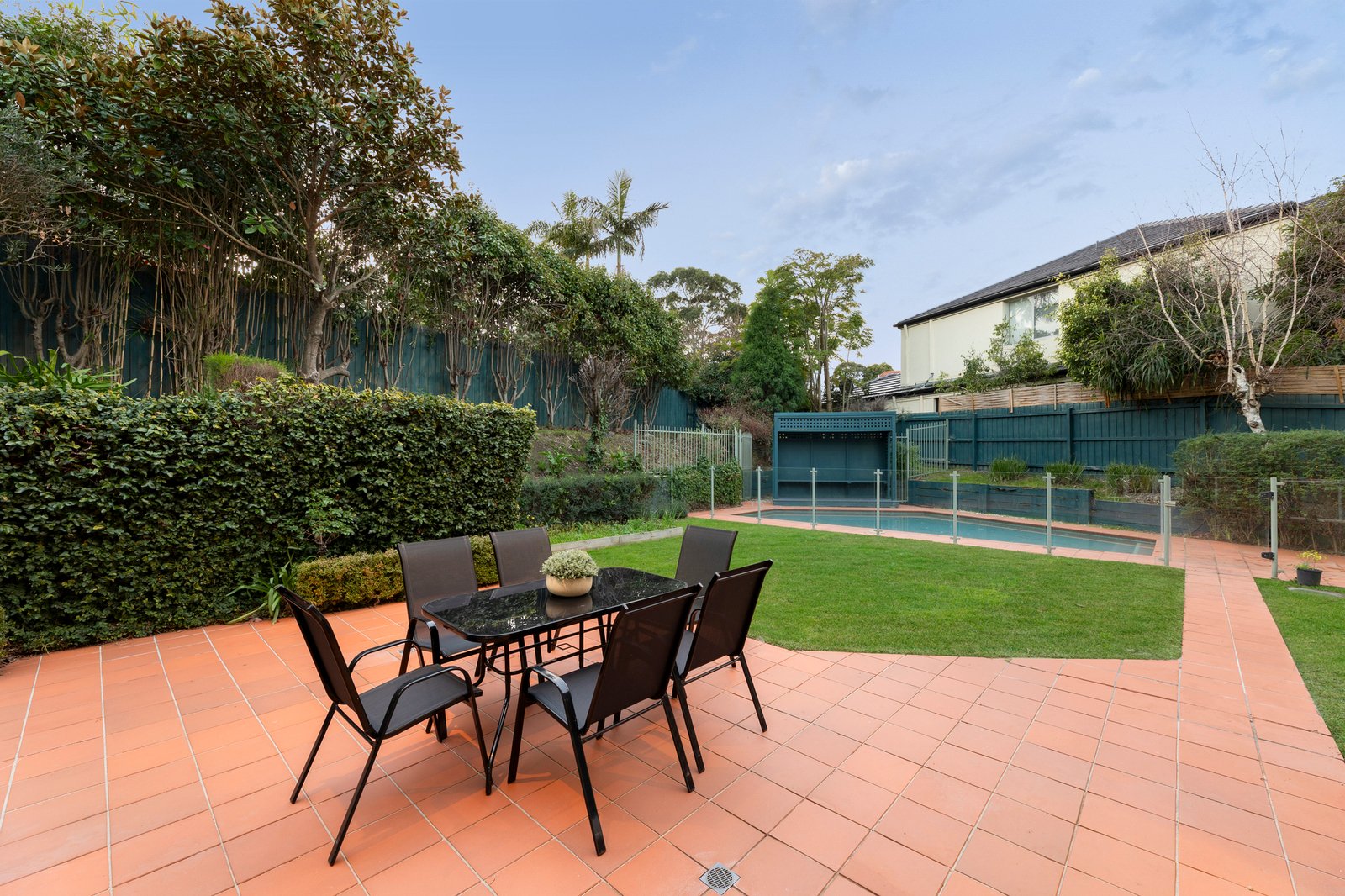 A light-filled open plan kitchen calls the family together for meals, against a lovely garden and pool backdrop. Elegant parquetry floors draw across the main living space, with carpet warming the feet in the bedrooms.