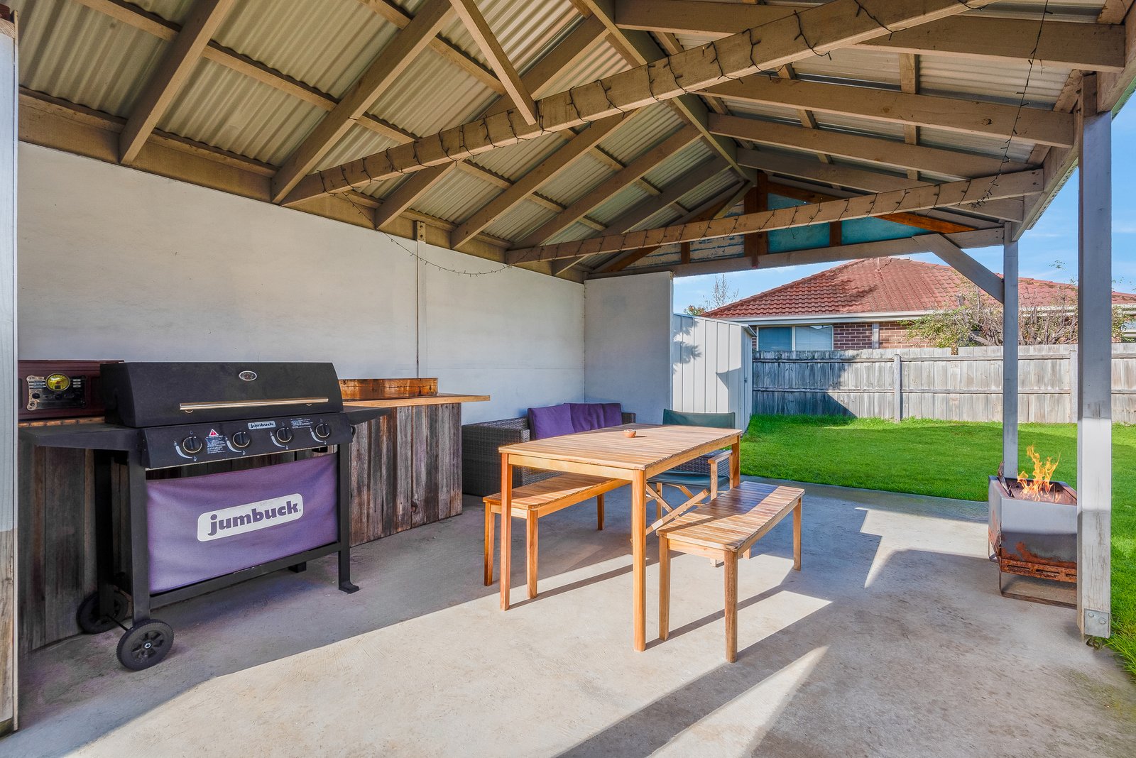 Outside, the large alfresco allows plenty of space for dining and lounging zones, providing a private and sheltered area to host family and friends, overlooking an expansive lawn area for the kids to play. The long driveway, carport, and double garage accommodate ample off-street parking, with an additional shed for workshop or storage facilities.