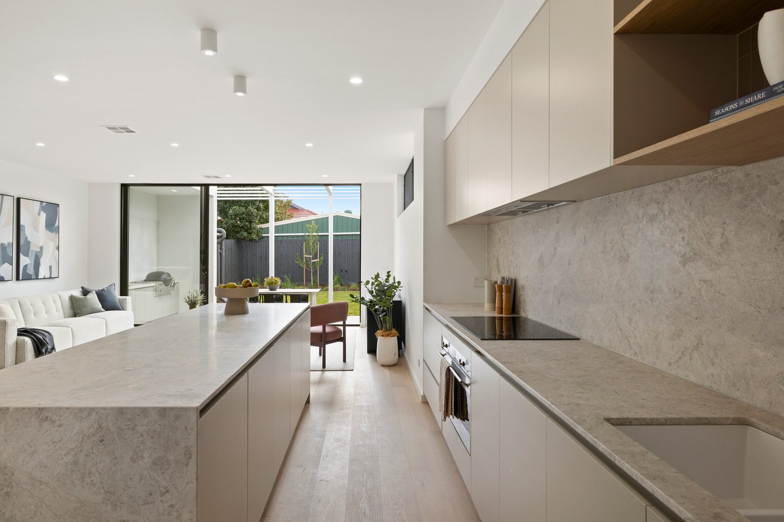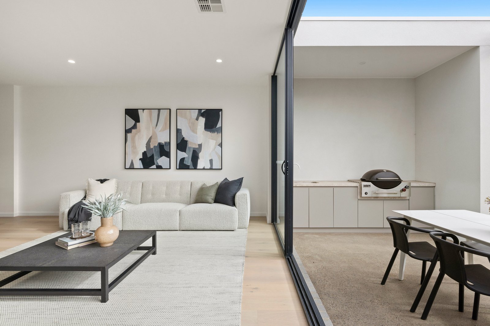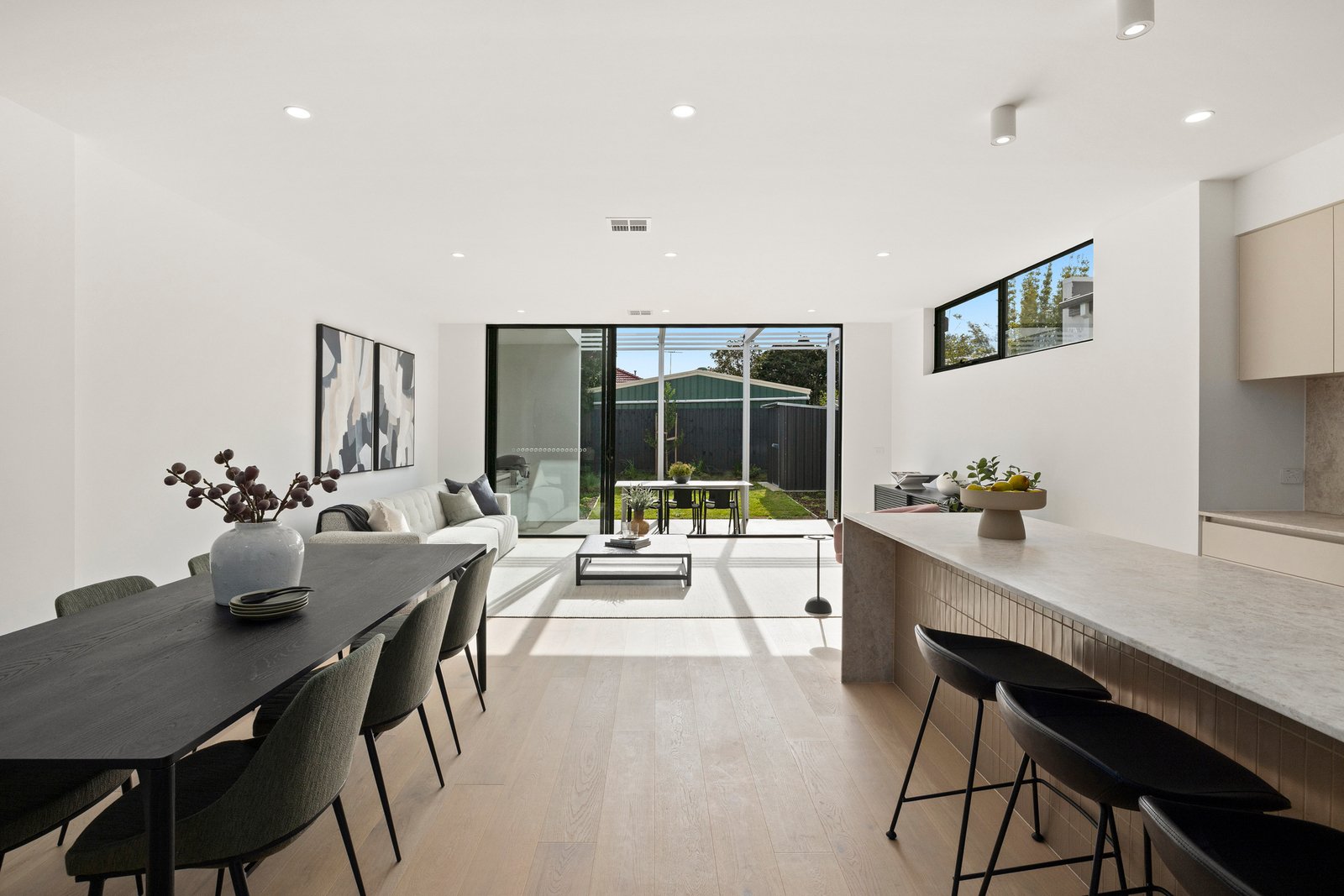 Combining exceptional craftsmanship with a sophisticated modern aesthetic, this brand-new home delivers timeless elegance and effortless family comfort in one of Parkdale’s most desirable school-zoned locations. The striking contemporary façade opens to light-filled interiors, impeccably styled and finished to the highest standard across both levels. Designed with families in mind, the flexible floorplan includes a welcoming study at the entrance, a convenient ground-floor bedroom and bathroom—perfect for guests—and a sun-drenched north-facing living and dining domain. At its heart is a spectacular chef’s kitchen featuring a vast waterfall-edge stone island, premium Smeg appliances, and abundant storage and prep space—ideal for both casual meals and entertaining. Upstairs, the additional bedrooms are serviced by a well-appointed family bathroom with a separate wet area, while a second living space provides the perfect retreat for children or guests. The serene master suite is a true sanctuary, complete with sheer linen curtains, a generous walk-in robe, and a designer ensuite with floor-to-ceiling tiles. Enjoy relaxed summer entertaining in the private north-facing courtyard, featuring a built-in BBQ area. Additional highlights include zoned heating/cooling, wide oak flooring, plush loop-pile carpet, a guest powder room, full laundry with extensive storage, a water tank, storage shed, and a remote-controlled garage with internal access. Set just moments from Parkdale Secondary College, this family-friendly address is also close to local primary schools, lush parks, sporting facilities, and the cafes and shops of Warren Road. Public transport options are nearby, and Mentone’s renowned private and independent schools are just a short drive away.