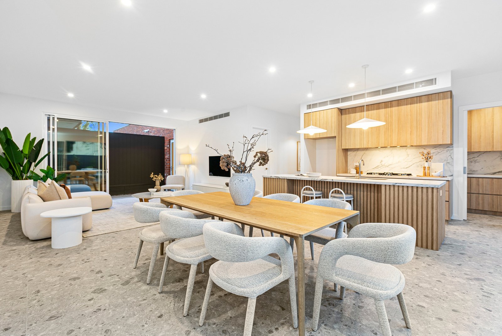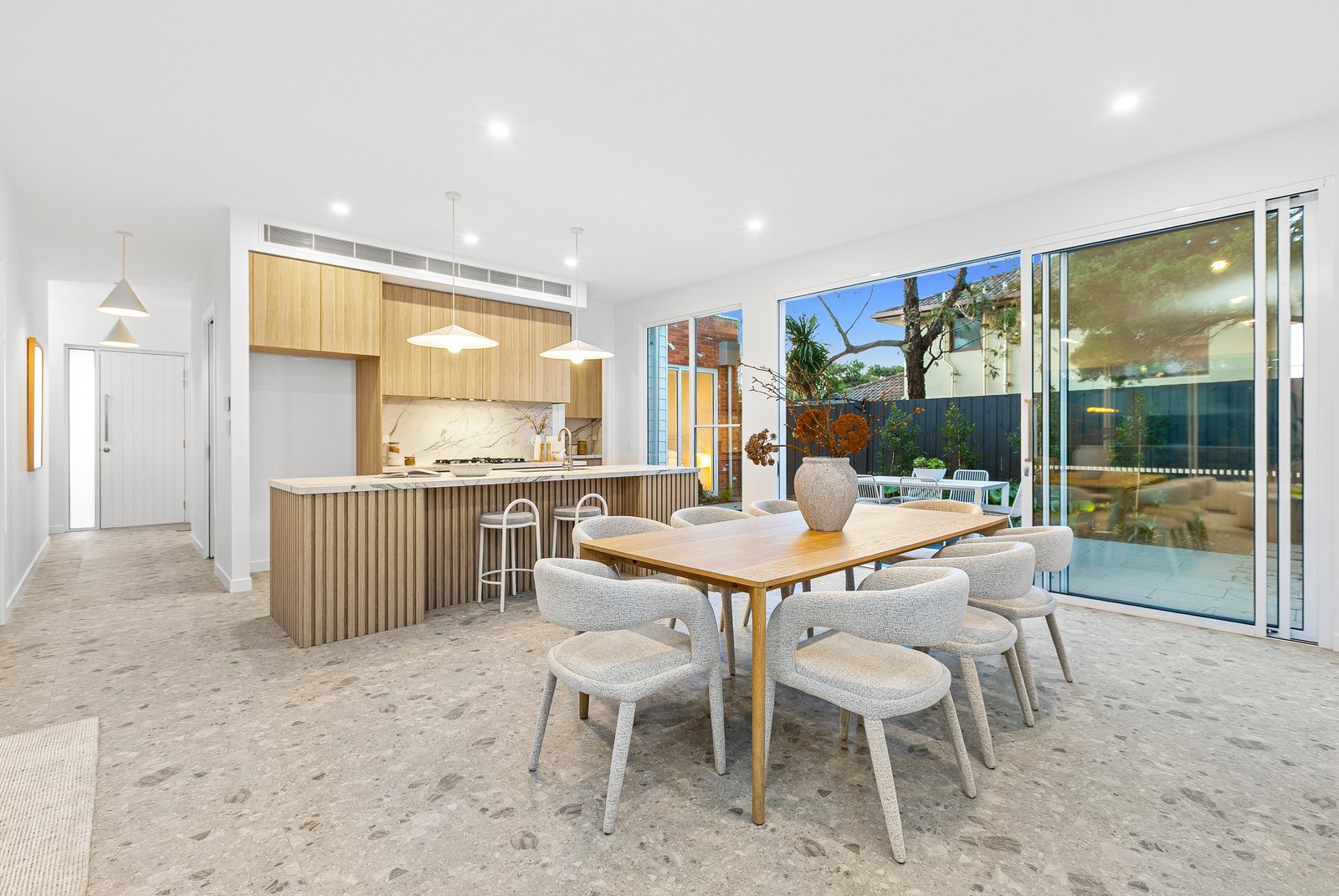 Floor-to-ceiling glass stacker doors flanking the living pavilion dissolve the boundaries between interior and exterior, revealing stunning landscaped outdoor entertaining zones designed by the award-winning team at Mint Design. Complete with sophisticated irrigation systems and integrated water management, these outdoor sanctuaries are ready for immediate enjoyment.
