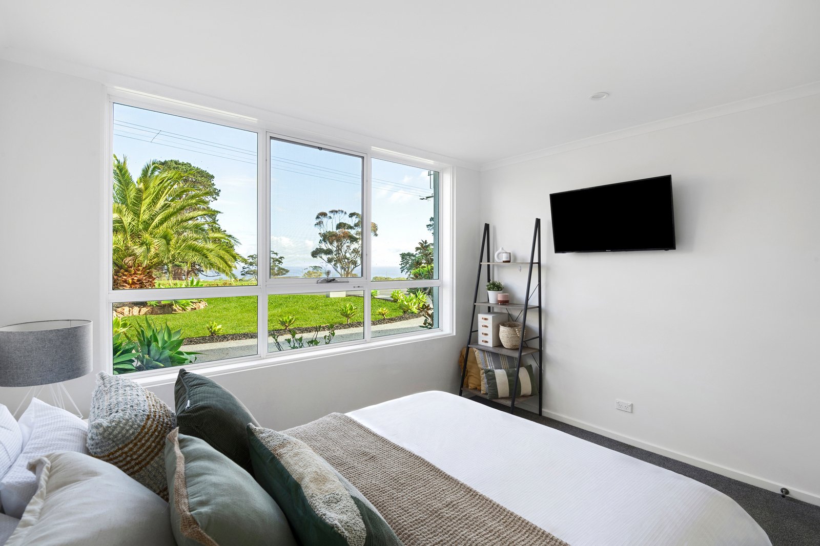 Tranquil water outlooks to the bay or pool are drawn into all four robed bedrooms, thoughtfully dispersed across both levels for privacy and perspective. The ground floor primary retreat aligns with its serene setting, complete with sliding glass access to the outdoors, offering parents a slice of luxury with a sizeable walk-in robe and a private ensuite.