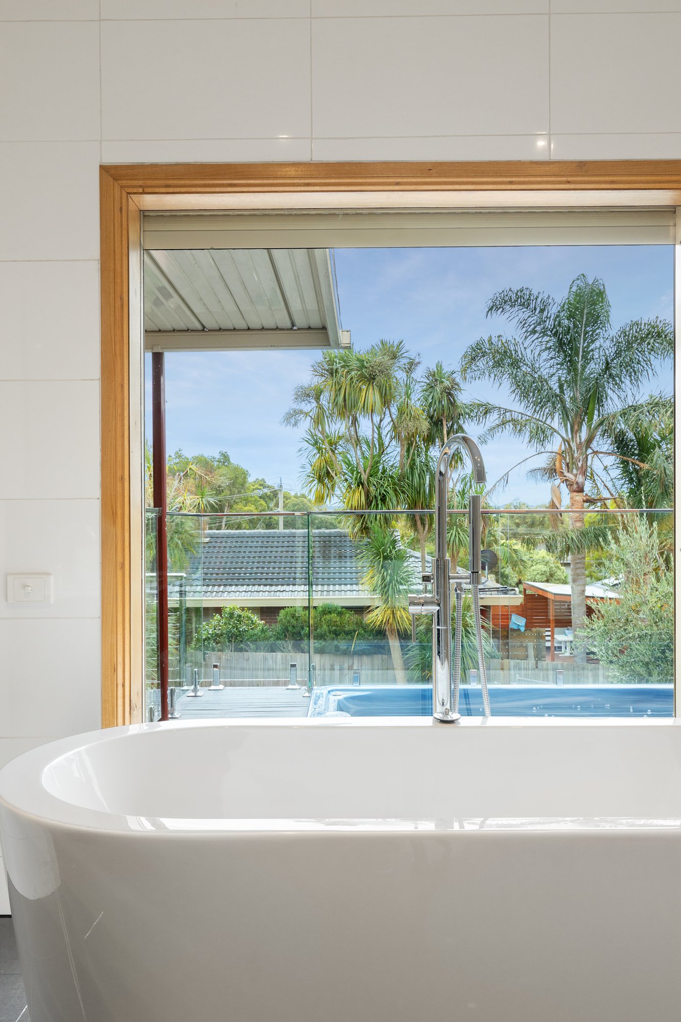 Even the family bathroom and laundry let you gaze across the mountains – with an outdoor swim/spa adding to the property’s leisure focus.