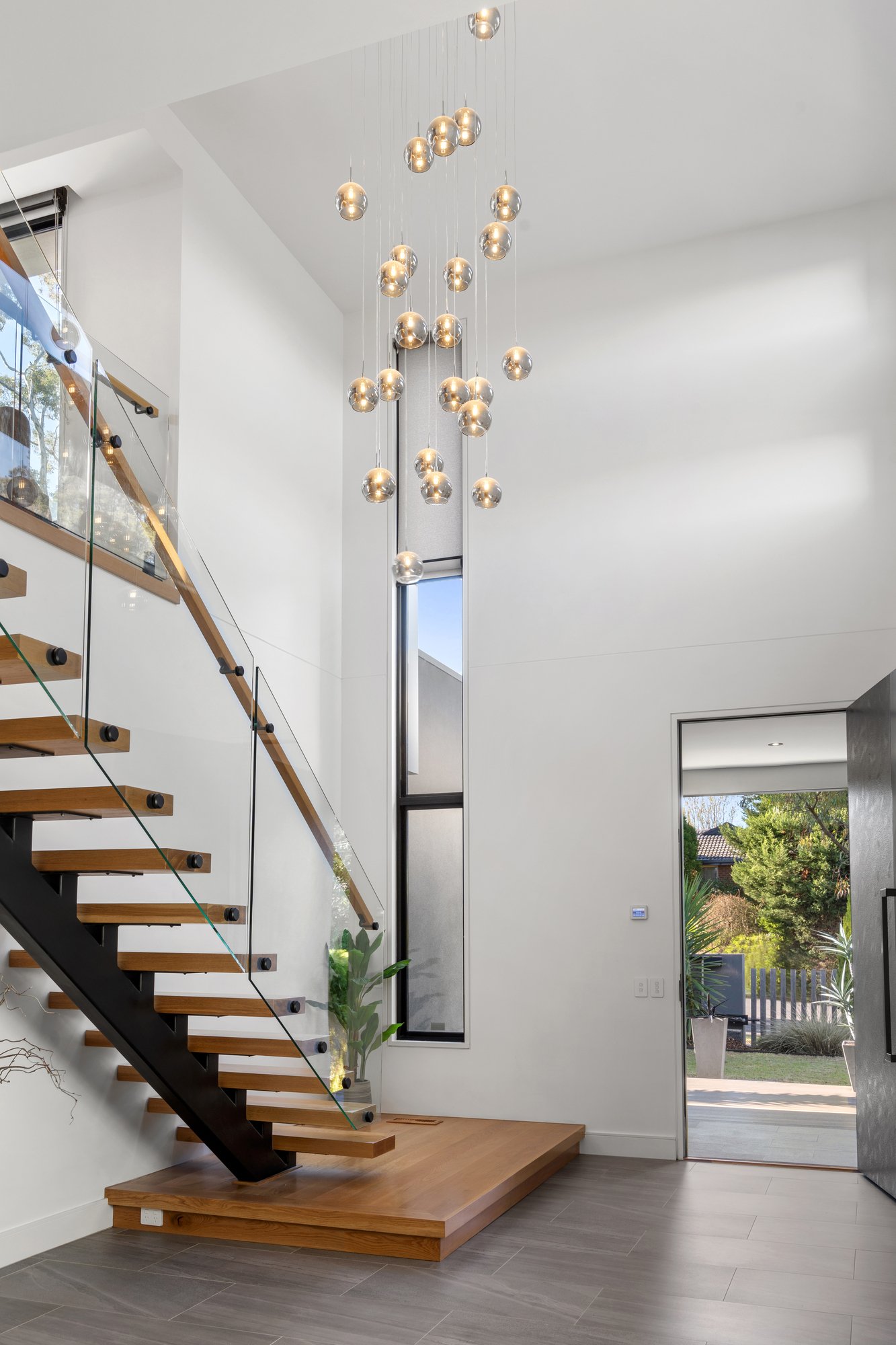 Beyond the secure electric gate and striking custom front door, you are welcomed by soaring 3.2-metre ceilings and an elegant American Oak staircase set beneath a dramatic double-height void. Bathed in natural light, the spacious interiors are designed for seamless indoor-outdoor living and family enjoyment.