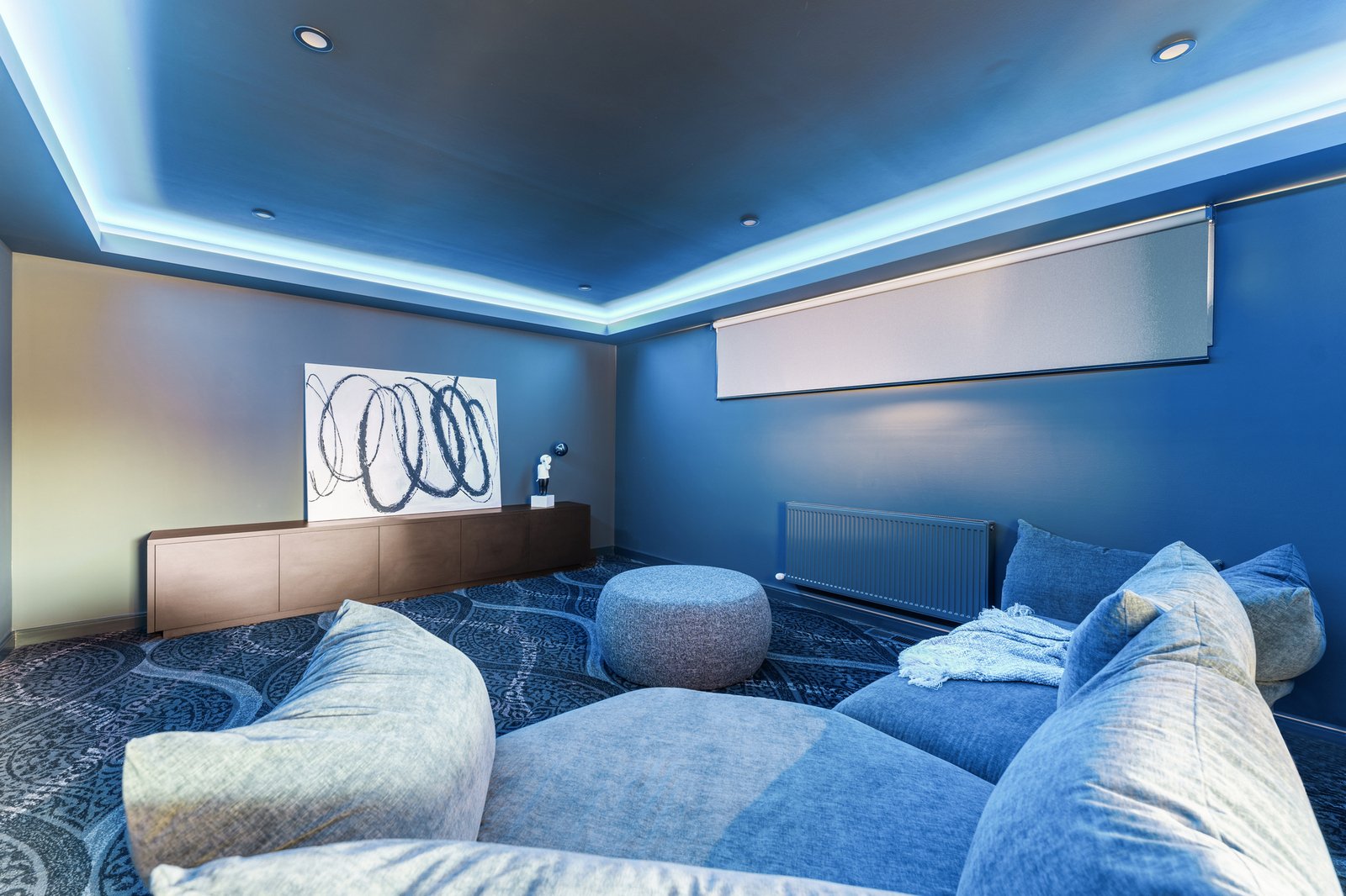Multiple living zones include a refined family area, an expansive open-plan living and dining area, a fitted home theatre with feature lighting, and an upstairs retreat. The gourmet kitchen is appointed with premium Caesarstone finishes, a Smeg induction cooktop, a Gaggenau wall oven, and a fully equipped butler’s pantry that will delight any home chef.
