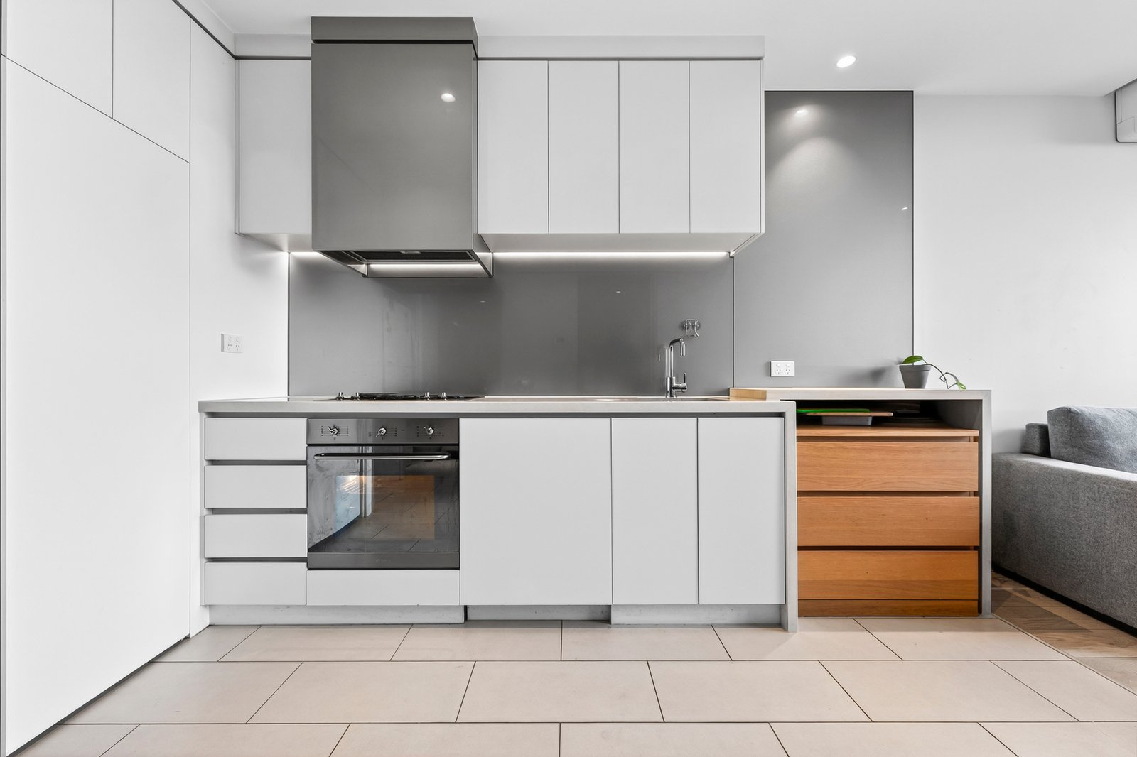 Located on the second floor and framed by leafy treetop vistas, this serene residence offers a light-filled and spacious open-plan living zone that seamlessly extends to a generous undercover balcony. The sleek designer kitchen is equipped with premium stainless steel Smeg appliances, including an integrated dishwasher, and is beautifully finished with reconstituted stone benchtops.