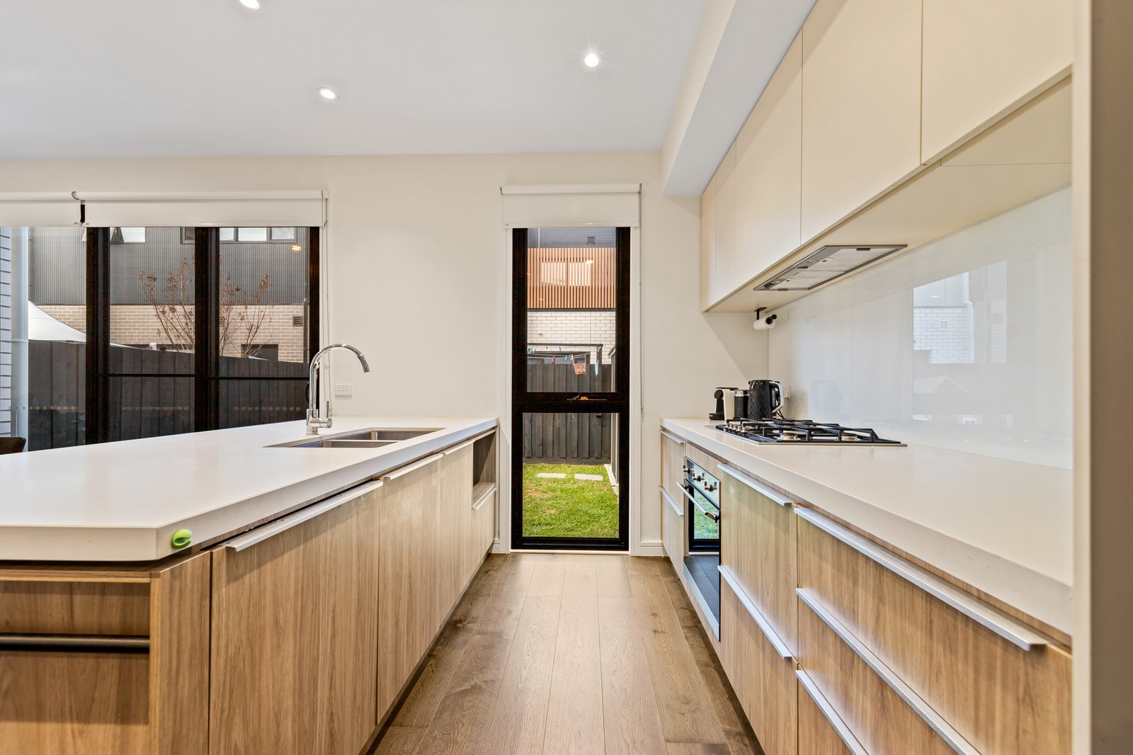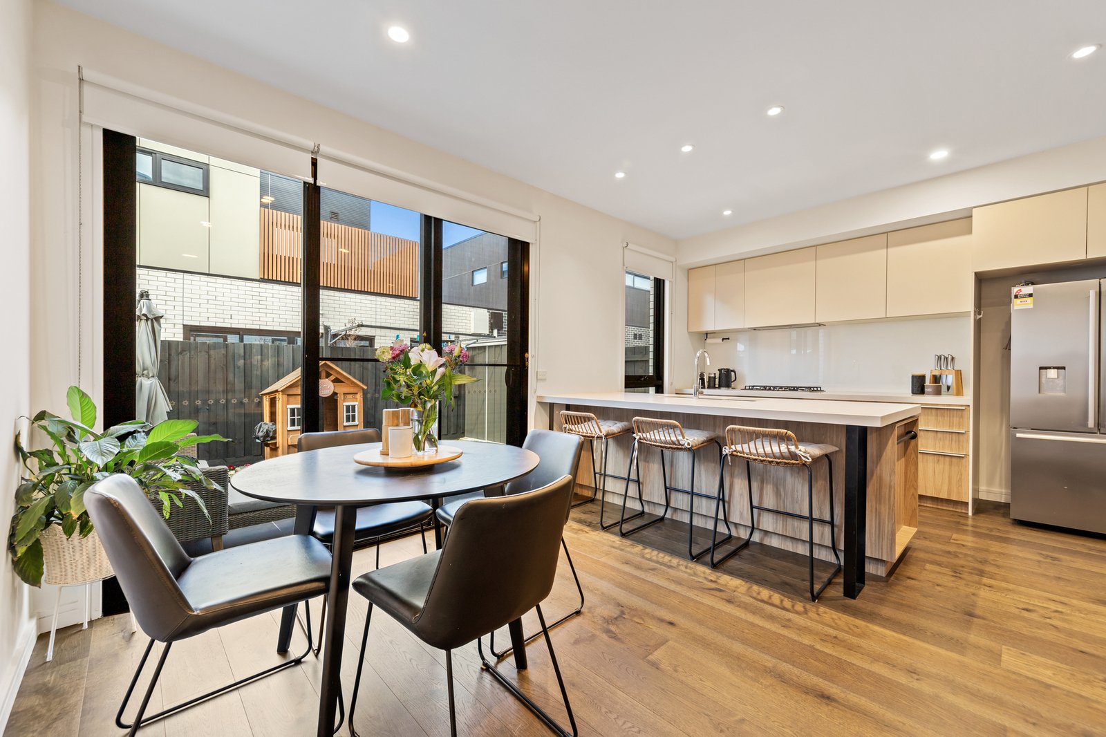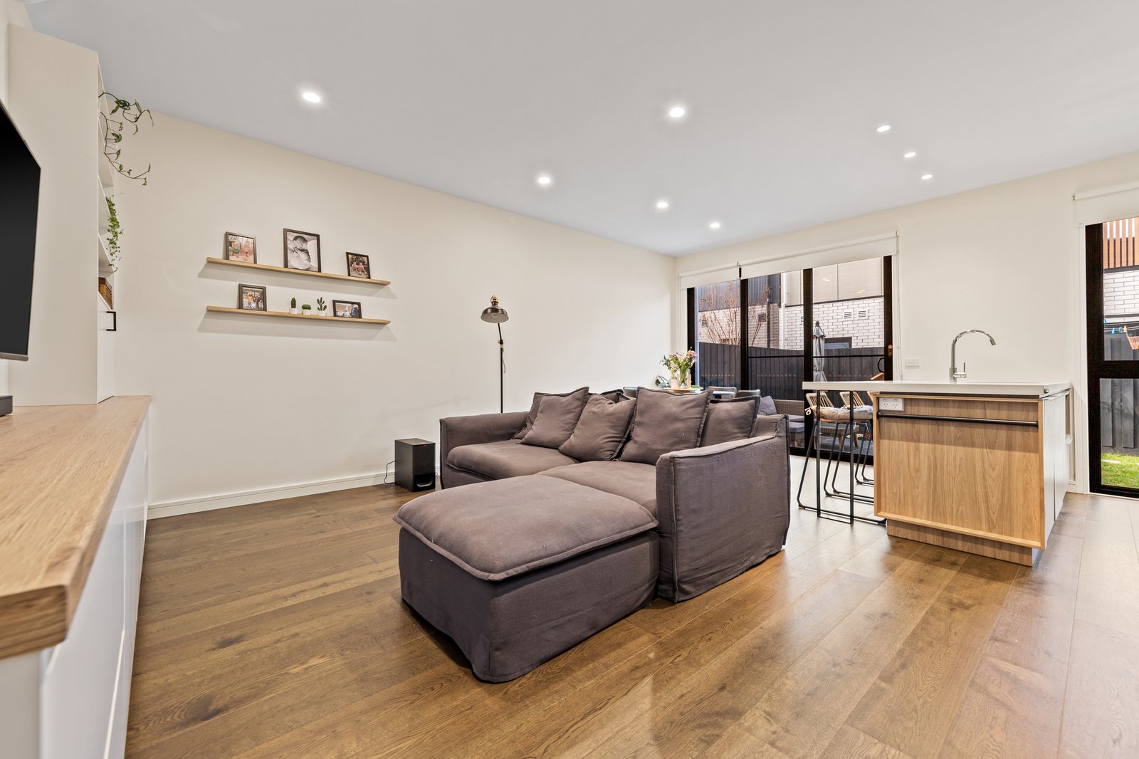 The ground floor welcomes you with an open-plan layout that includes a stylish living area with a built-in TV unit. The kitchen is fitted with quality appliances including a Smeg oven, cooktop, rangehood and dishwasher, making both daily meals and entertaining a breeze. The dining and living space flows effortlessly to a low-maintenance backyard ideal for entertaining or unwinding in private comfort.