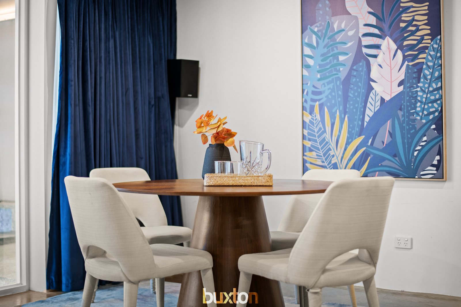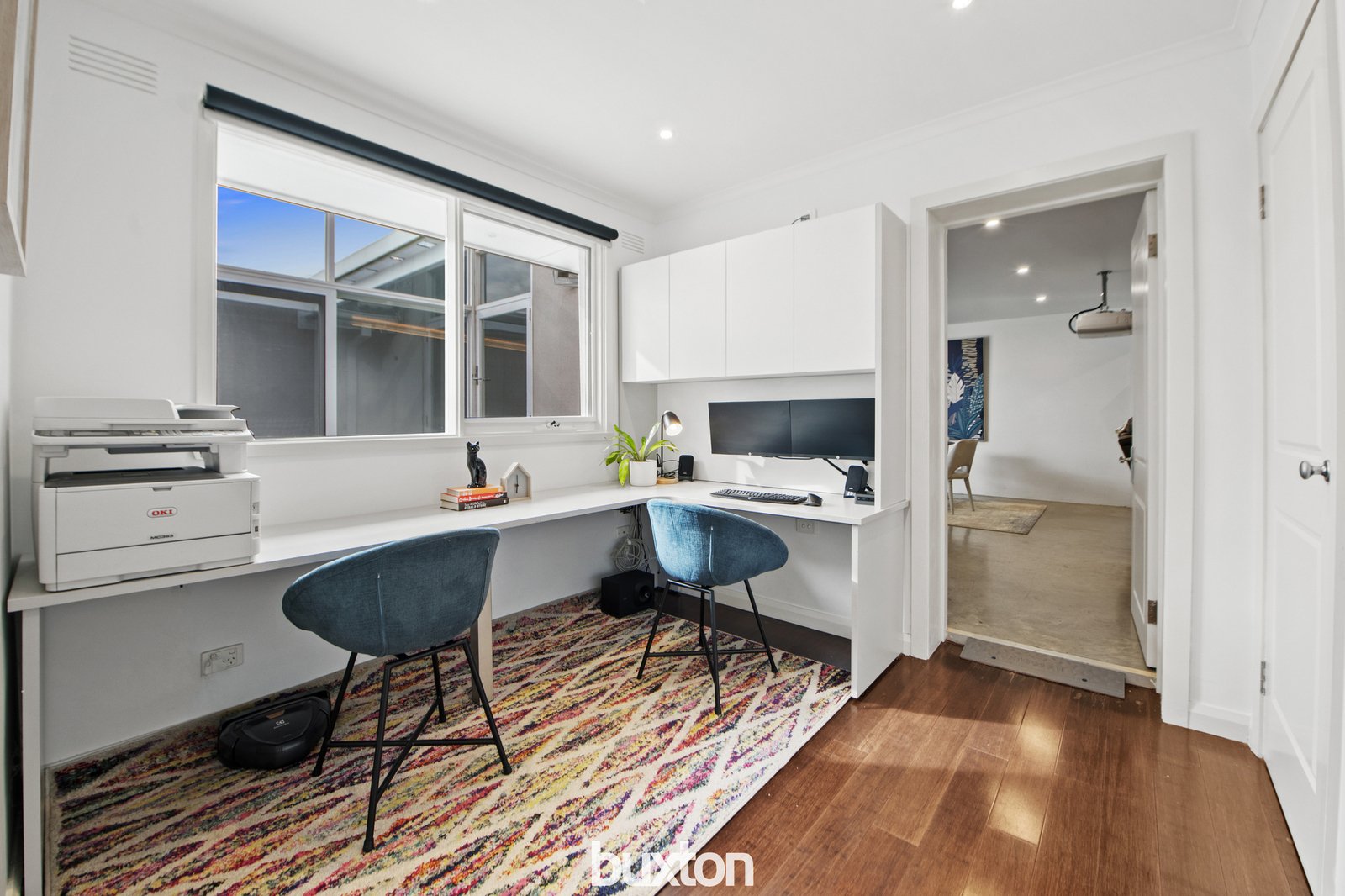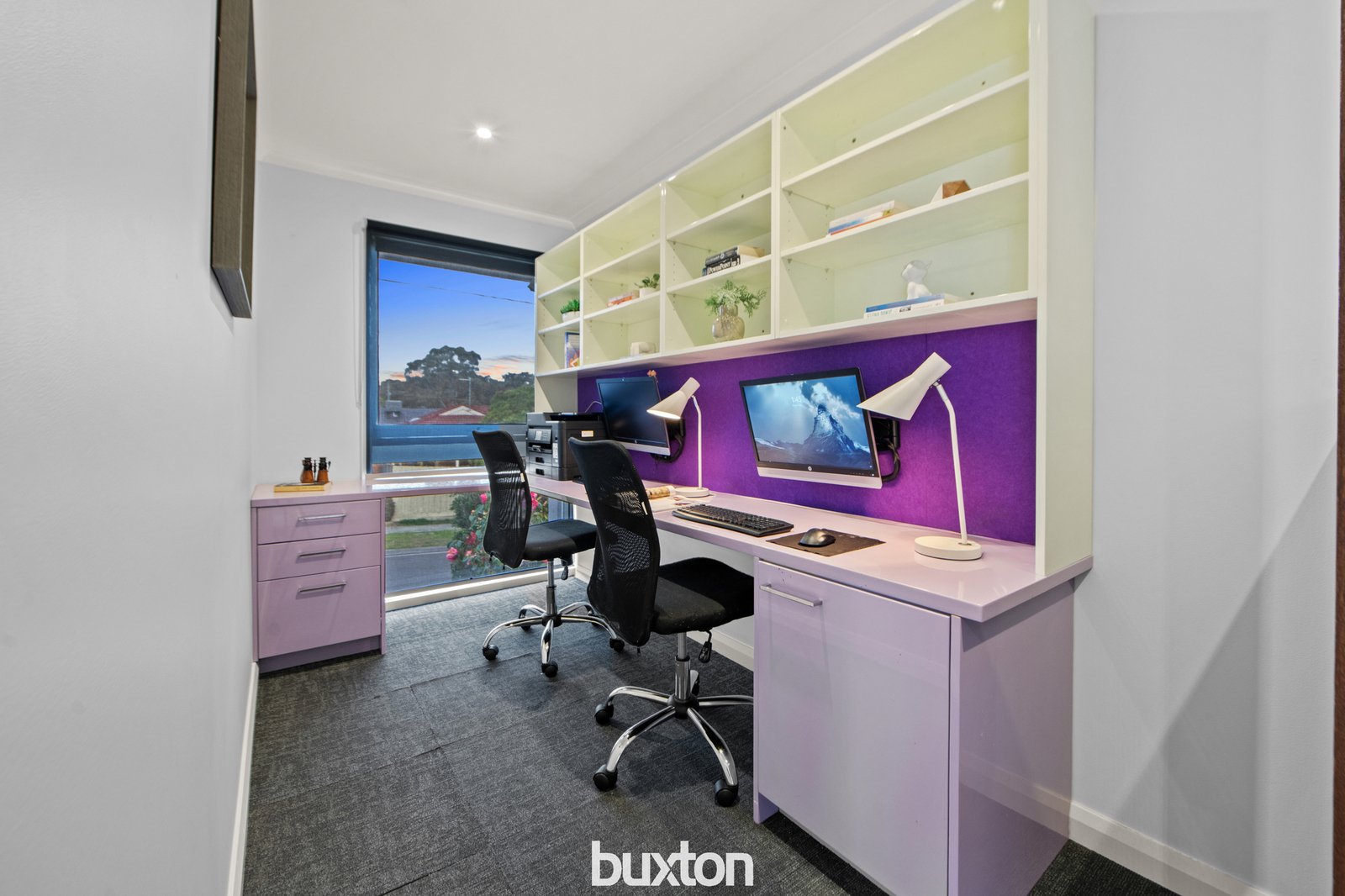 Rounding the west facing corner of Huxley and Curie, the elevated home offers a substantial floor plan with 4 bedrooms (2 on each floor) and the flexibility of 2 studies with in built desks and storage cupboards for students and remote workers.