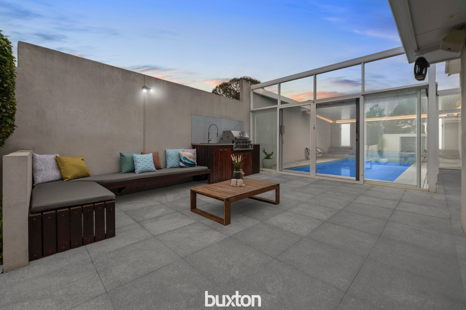 Designed with resort style lifestyle in mind, there’s an infrared mains gas BBQ, plumbed sink, bench seating, a herb wall and easy access to the 8m natural heated pool and spa.