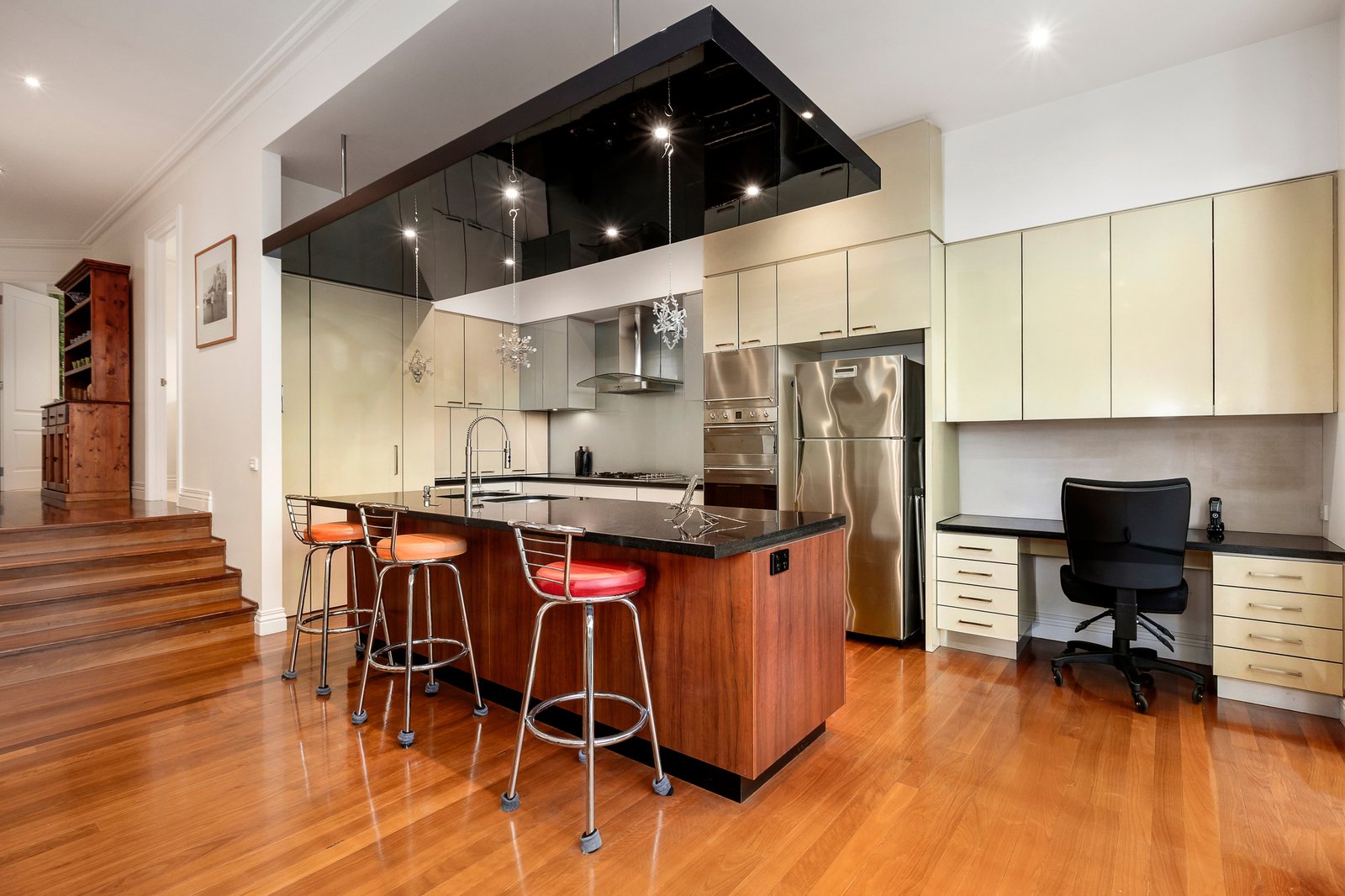 Perfectly positioned for indoor hosting or outside on the as-new alfresco deck, the sophisticated Smeg-equipped kitchen has been finished to please. Set under a glossy Emporite bulkhead, it boasts substantial storage – including a walk-in pantry and appliance garage – along with timeless ebony granite benchtops.
