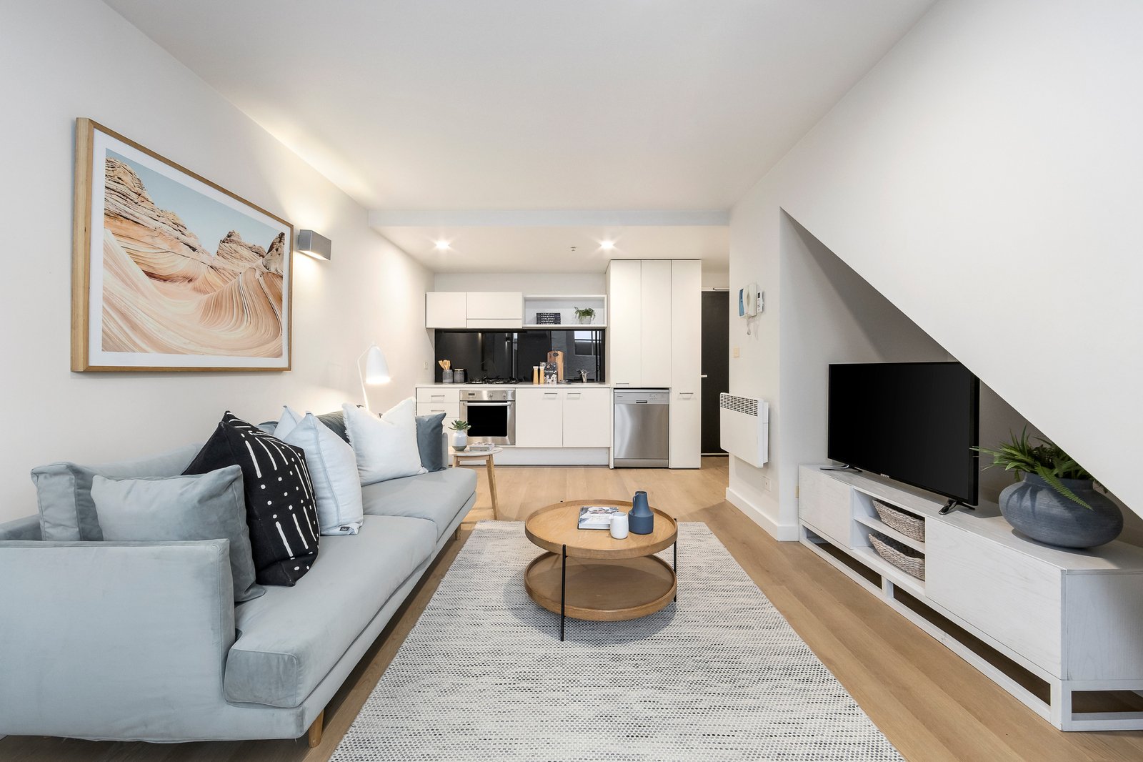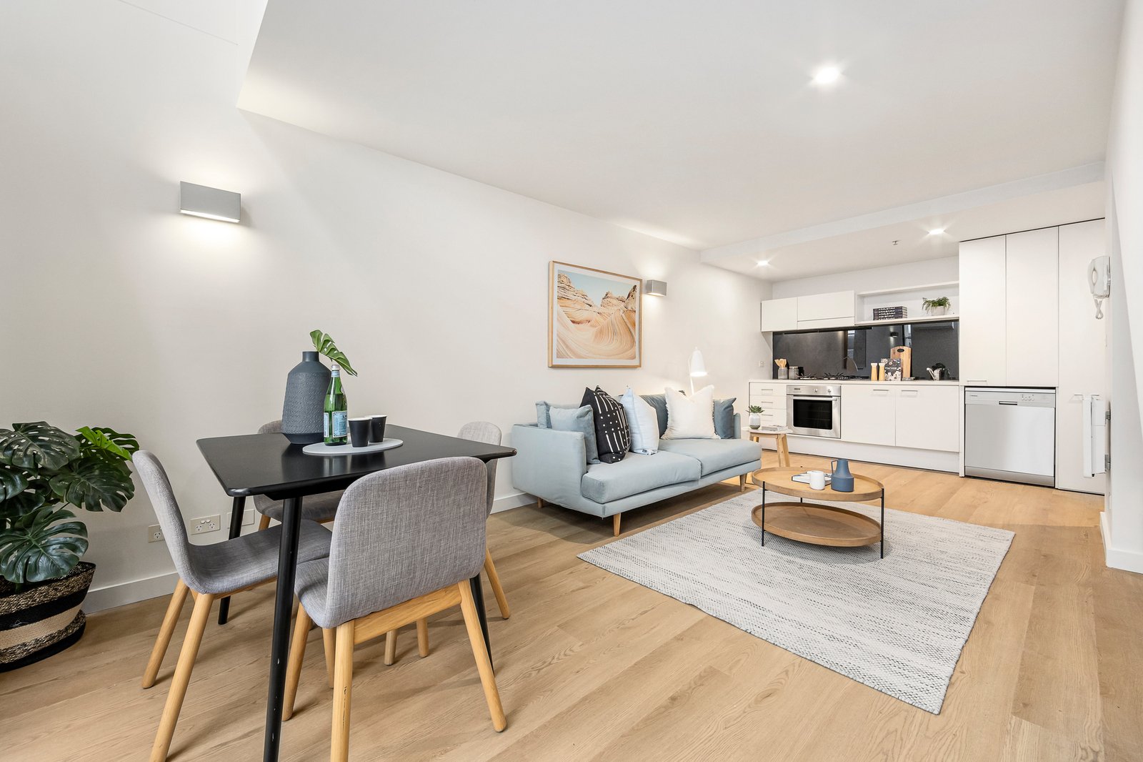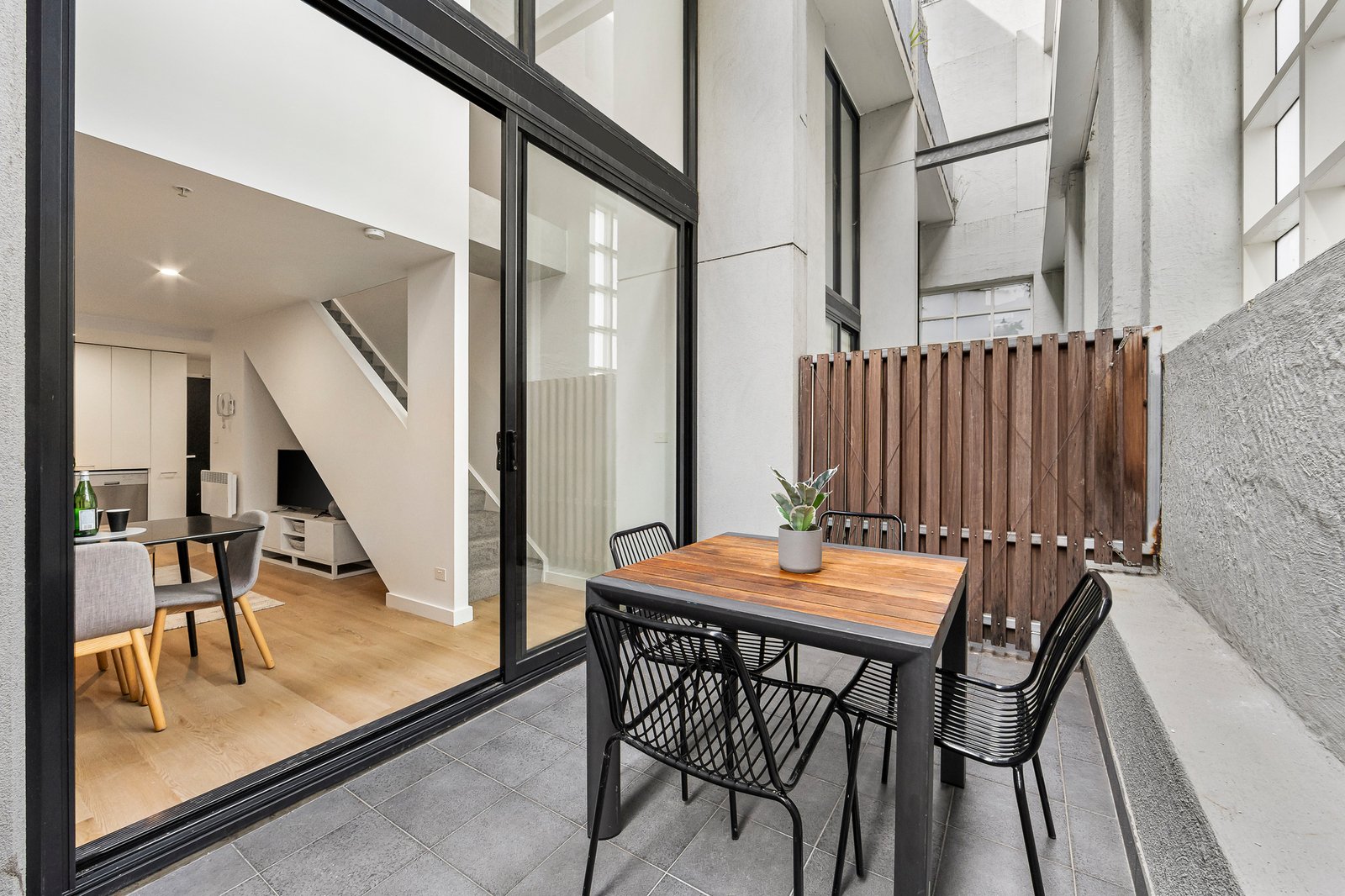 Tucked within a tightly held architect-designed complex, this stylish two-level residence delivers low-maintenance luxury just moments from the St Kilda foreshore.