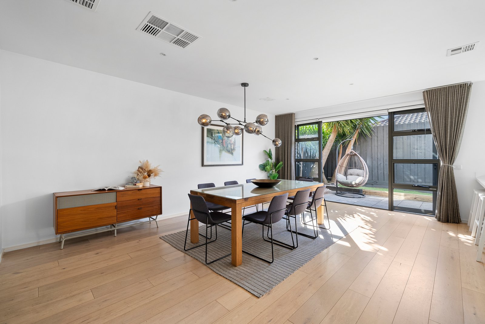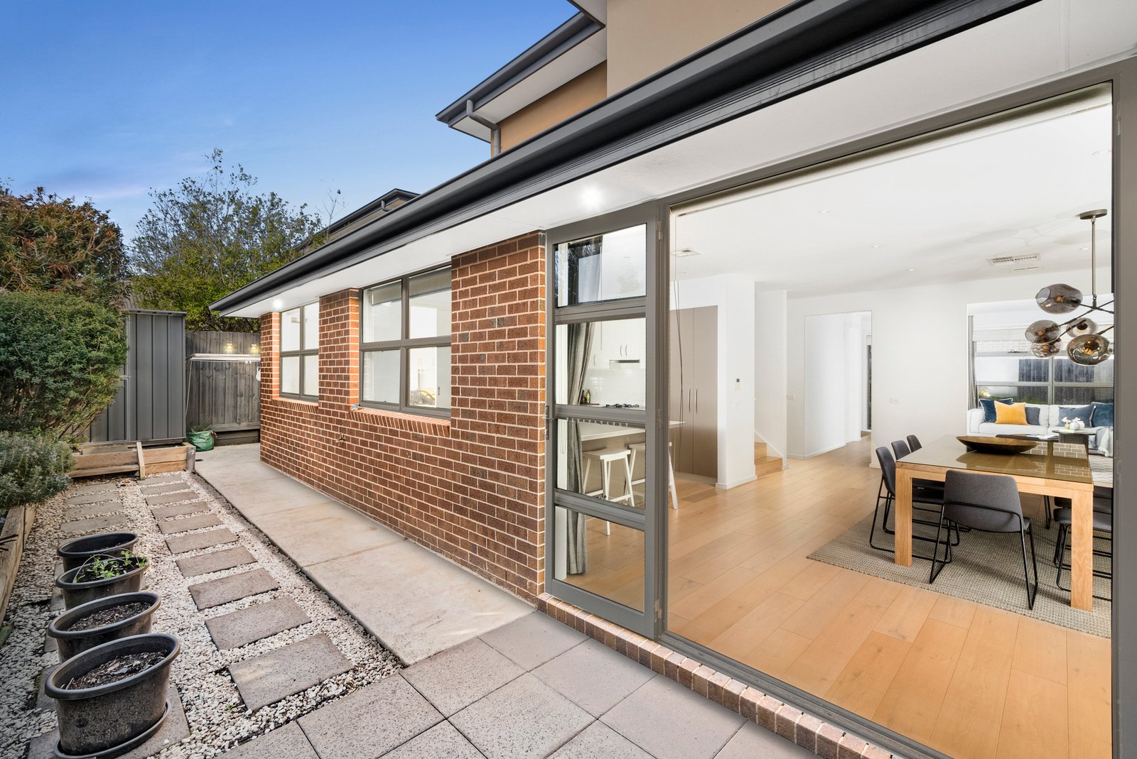 Entertain with ease in the north-facing courtyard garden oasis, featuring mature trees and a stylish alfresco area — perfect for year-round enjoyment.