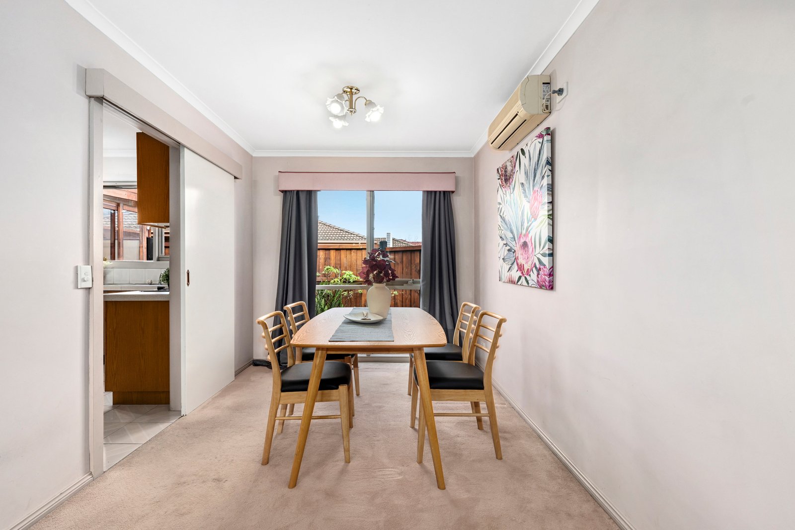 Modern features include a brand-new pyrolytic self-cleaning double oven with Air Fryer function, ducted heating for winter, inverter air conditioning for summer, and a secure garage with internal dry access via the laundry.