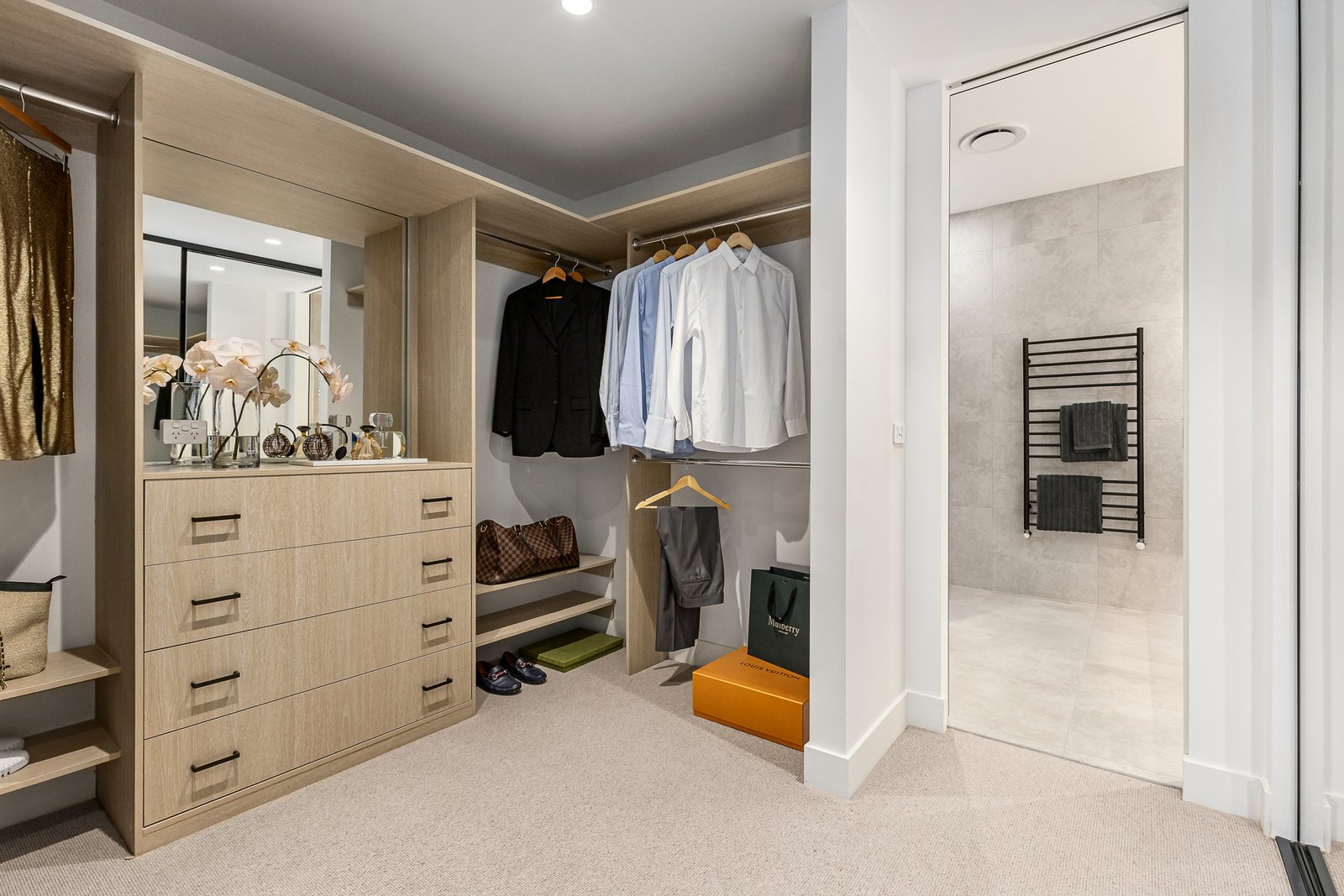 A ground-floor bedroom and en suite, ideal for guests or a spacious home-office (built-in robes), is another sought after addition. Upstairs hosts a lavish parents’ haven, offering a sunset terrace and sitting area, along with a fitted dressing room and a dual vanity en suite. Two more robed bedrooms, and a family bathroom, are zoned beyond the retreat for superior peace and privacy.