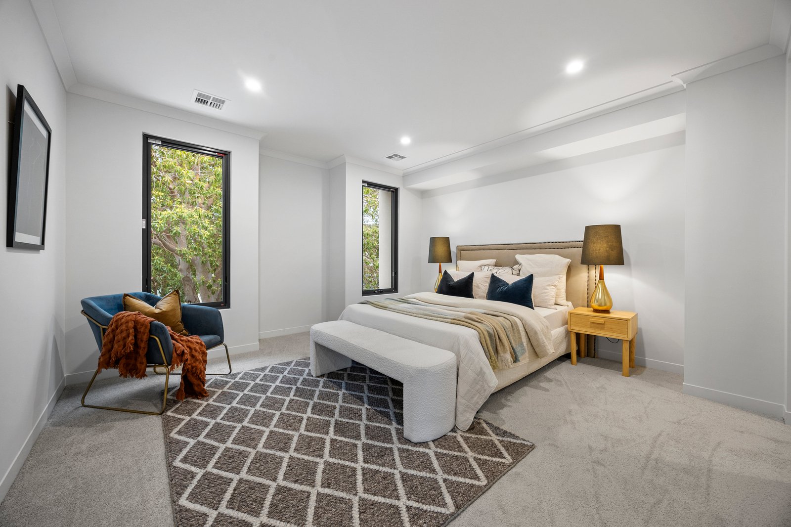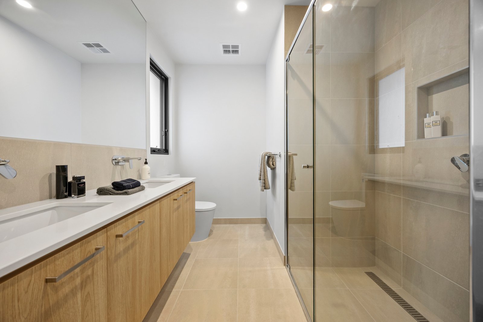 Appointed to a demanding architectural specification with a Smeg & Bosch appliance kitchen (catching more north sun with a wide northerly window-splashback), the home is full of brilliant ideas. With a clever home-office area in the home’s quietest spot, & a walk-in robe for almost every bedroom, there’s a dual-vanity ensuite for the principal-suite & a generous double auto-garage under the roofline.