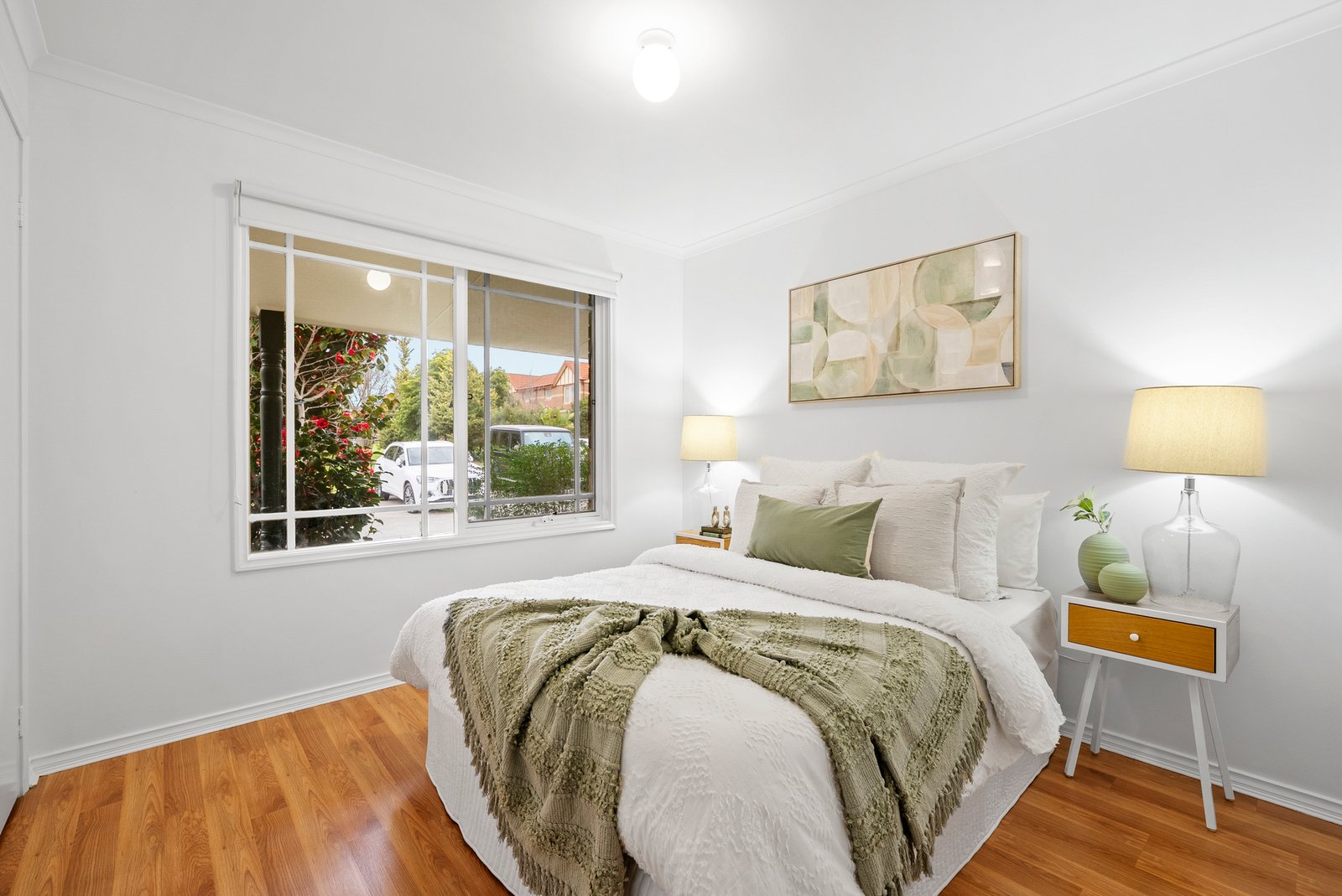 Accommodation is equally impressive, with two beautifully scaled bedrooms enjoying leafy outlooks - one with a walk-in robe, the other with built-in robes - both served by a sparkling central bathroom, and separate WC.