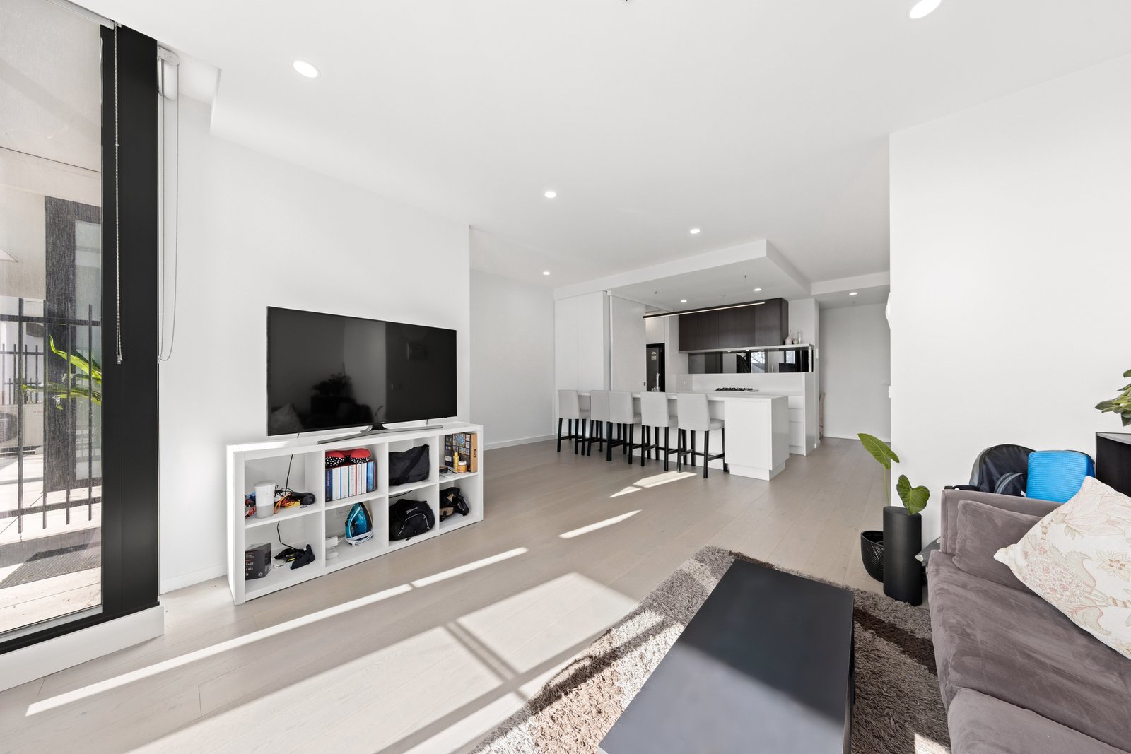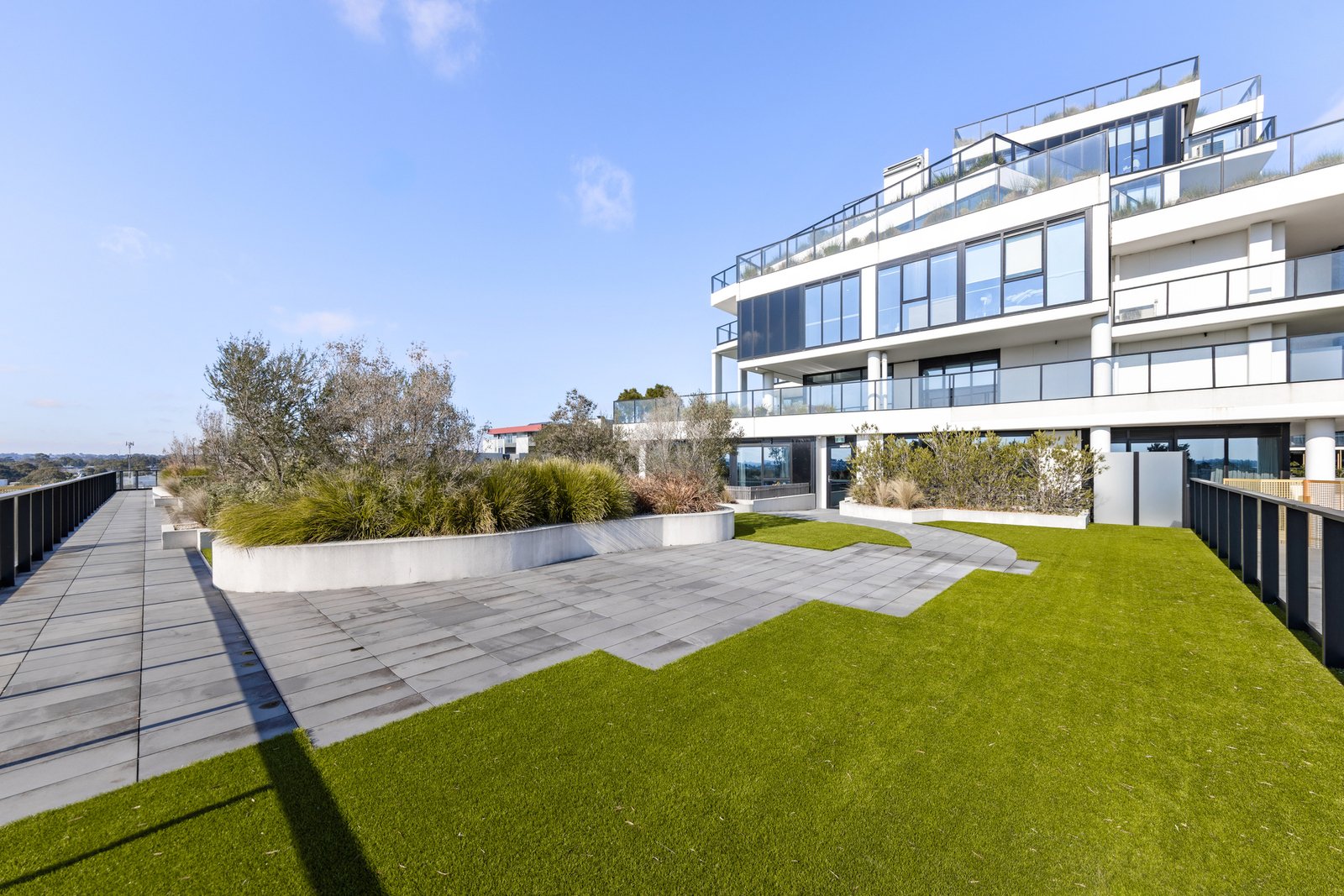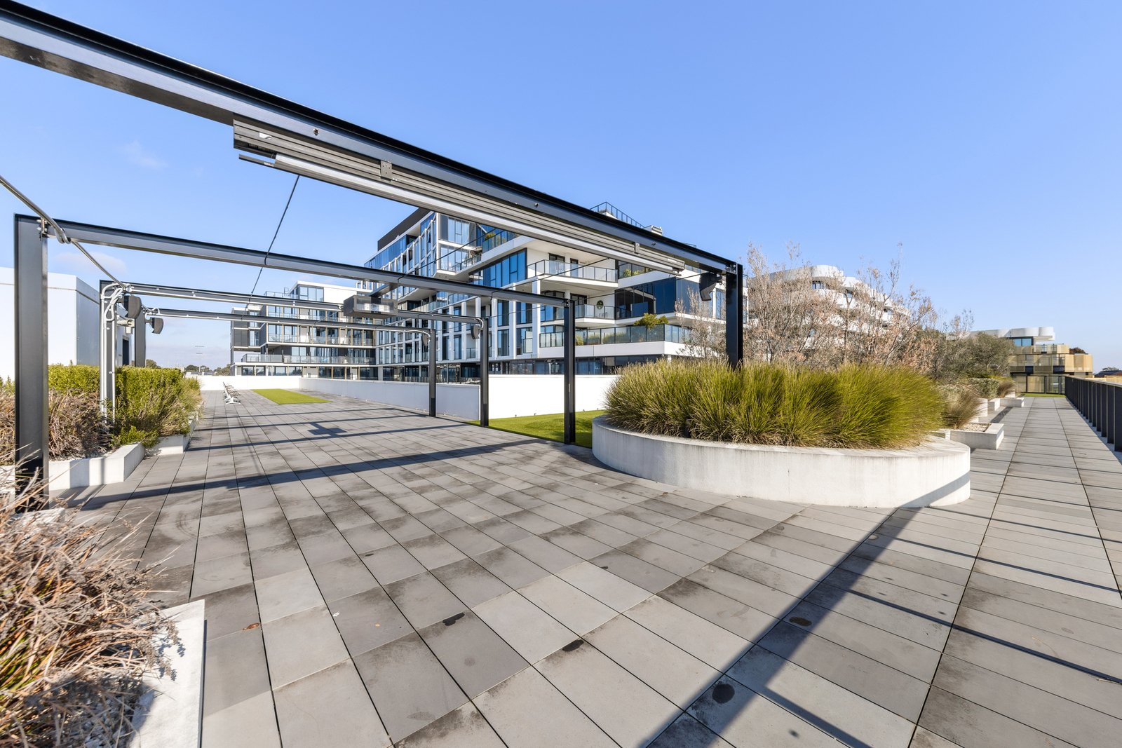 Additional features include a secure garage space with storage, reverse cycle air-conditionings, and access to resort-style amenities such as an indoor swimming pool, rooftop garden, and yoga studio.